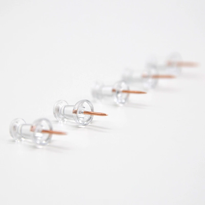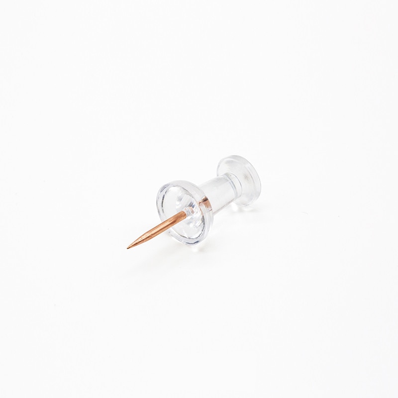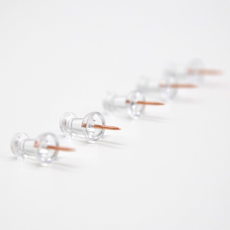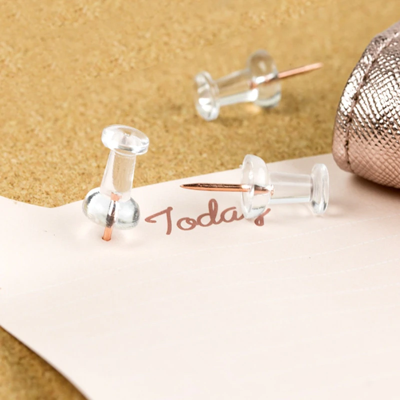 Add a touch of elegance to your bulletin boards with these 100 clear gold push pins. The clear cap and gold steel point make for a chic and sophisticated look while providing functionality. Perfect for home, office, or classroom use, these push pins are great for hanging up important memos, photos, or artwork. Keep them organized and protected in the included transparent plastic box for easy storage and accessibility. With 100 push pins in one set, you'll have plenty to stay organized and stylish.