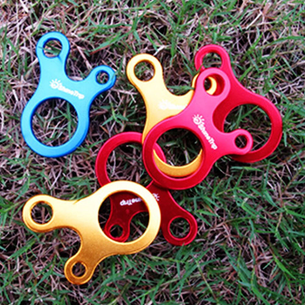 Made from aluminium they're super lightweight and are designed with 3 holes to loop rope through.
