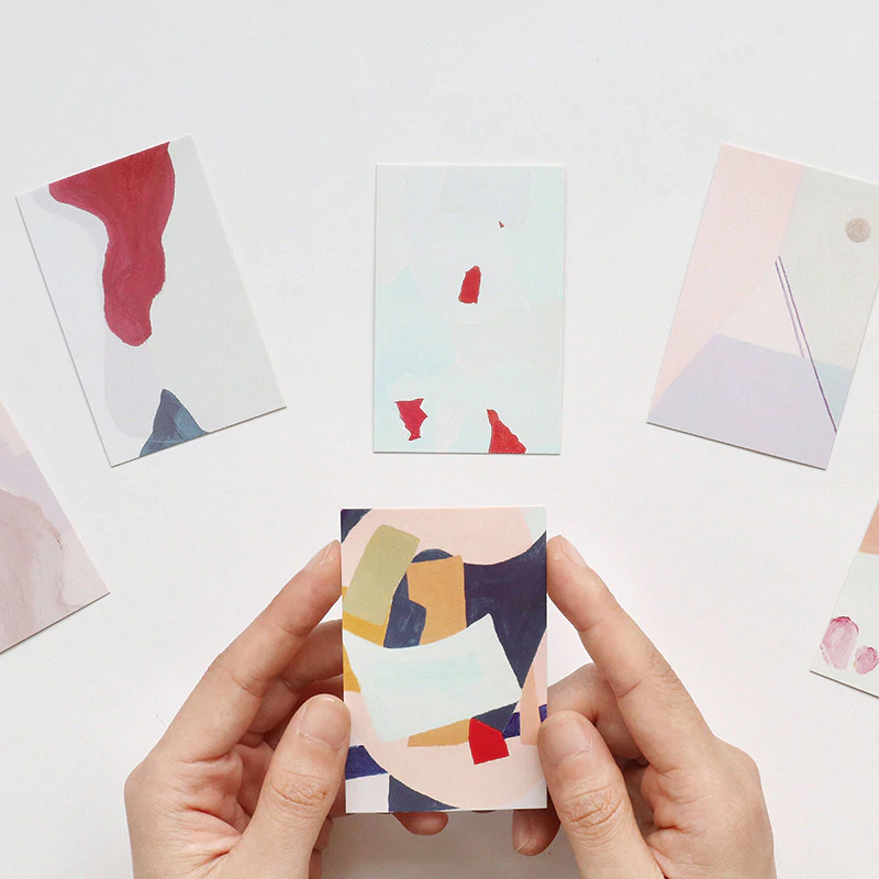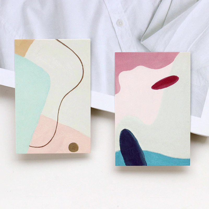 Printed with beautiful watercolour abstract designs and small enough to fit in your handbag, attach to a present or bouquet of flowers, and post with ease.