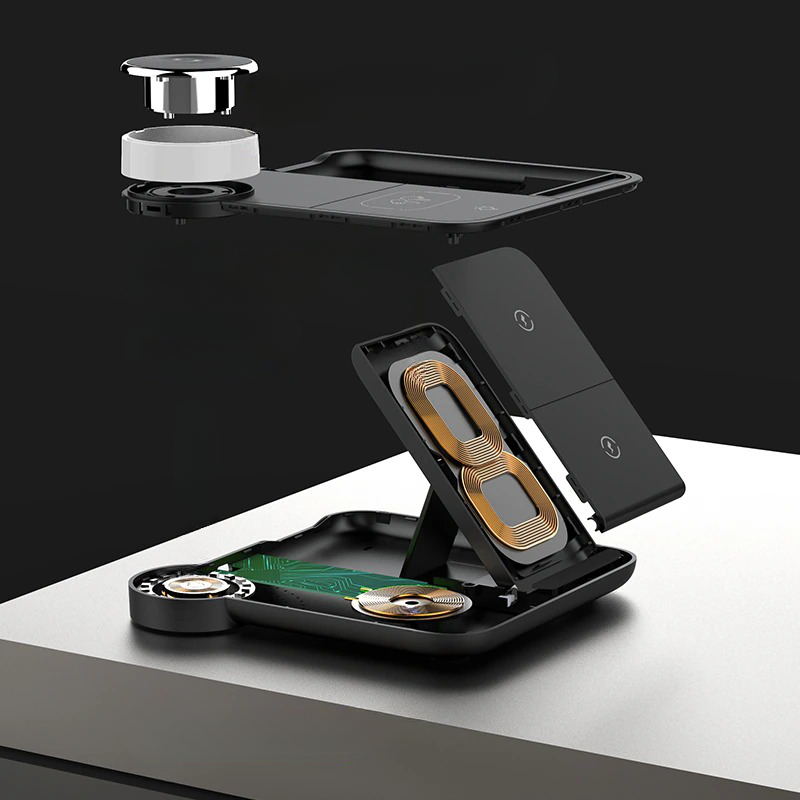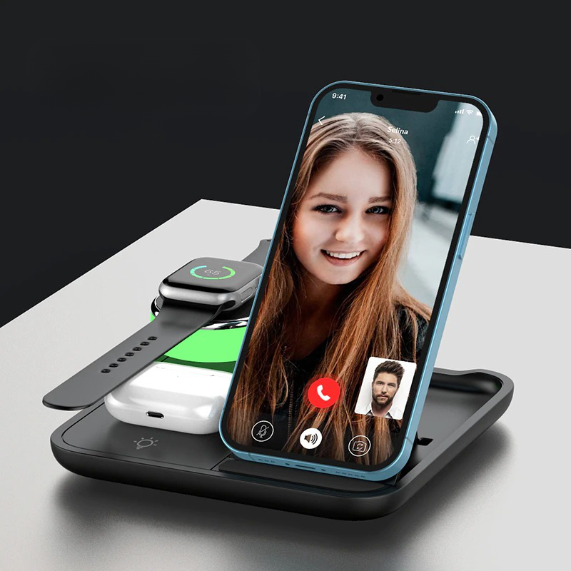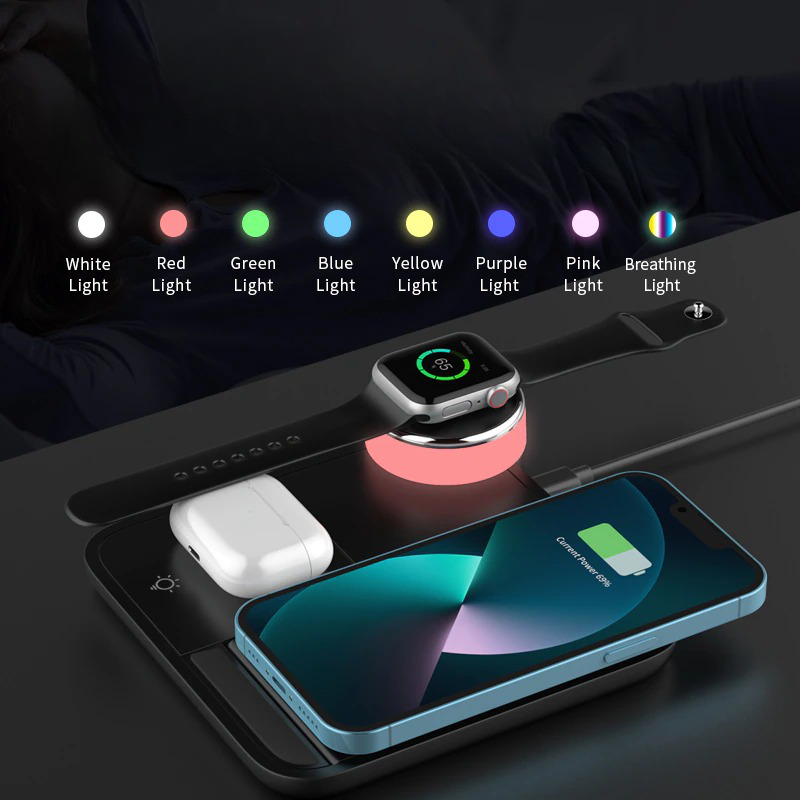Streamline your charging routine with this sleek and convenient 3 in 1 Wireless Charge Stand. Say goodbye to tangled cords and multiple charging bricks cluttering your space. With the ability to wirelessly charge up to 3 devices at once, you'll have all your essential electronics ready to go in no time. And with fast charging speeds of up to 15W, you can be confident that your devices will be powered up and ready to go when you are. Plus, the built-in clock display and LED lamp add extra functionality and convenience to this must-have accessory for any tech lover. Upgrade your charging game today with this 3 in 1 Wireless Charge Stand.