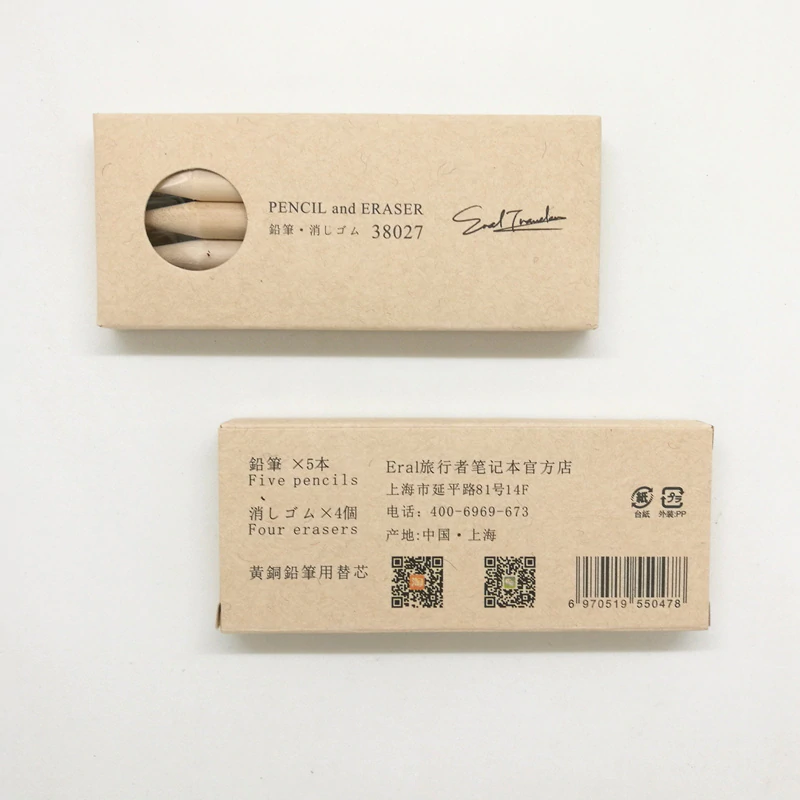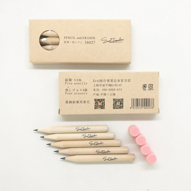A simple set of 5 mini pencils and 4 erasers for your drawing and writing needs.