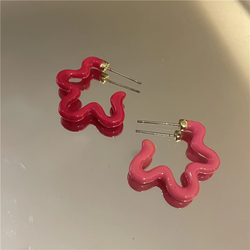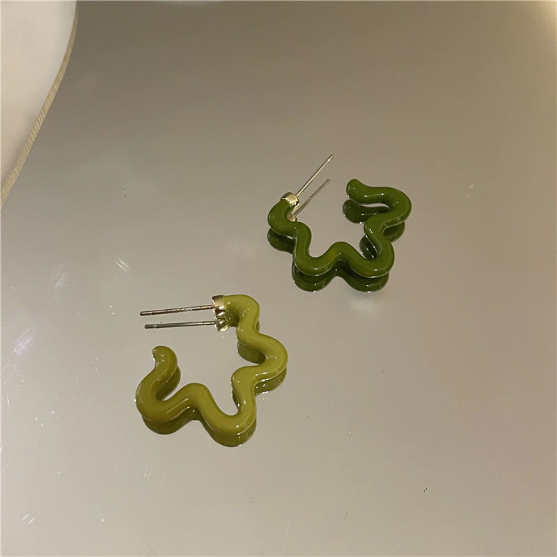 These funky earrings feature an abstract squiggly small hoop design and are available in 3 colours. Each pair has a slightly different shade of colour for each earring so if you're looking for a unique accessory to add to your outfit then these fun earrings are sure to be a hit. Grab yourself a few pairs and mix and match to take your accessory game to the next level.