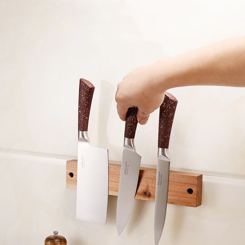 Never again will you have to search for the knife you need. With this Acacia Wood Magnetic Knife Holder, your knives are front and center, easy to grab, and ready to go! This magnetic holder can be mounted on your wall or fridge for a hands-free way of storing your sharpest knives.