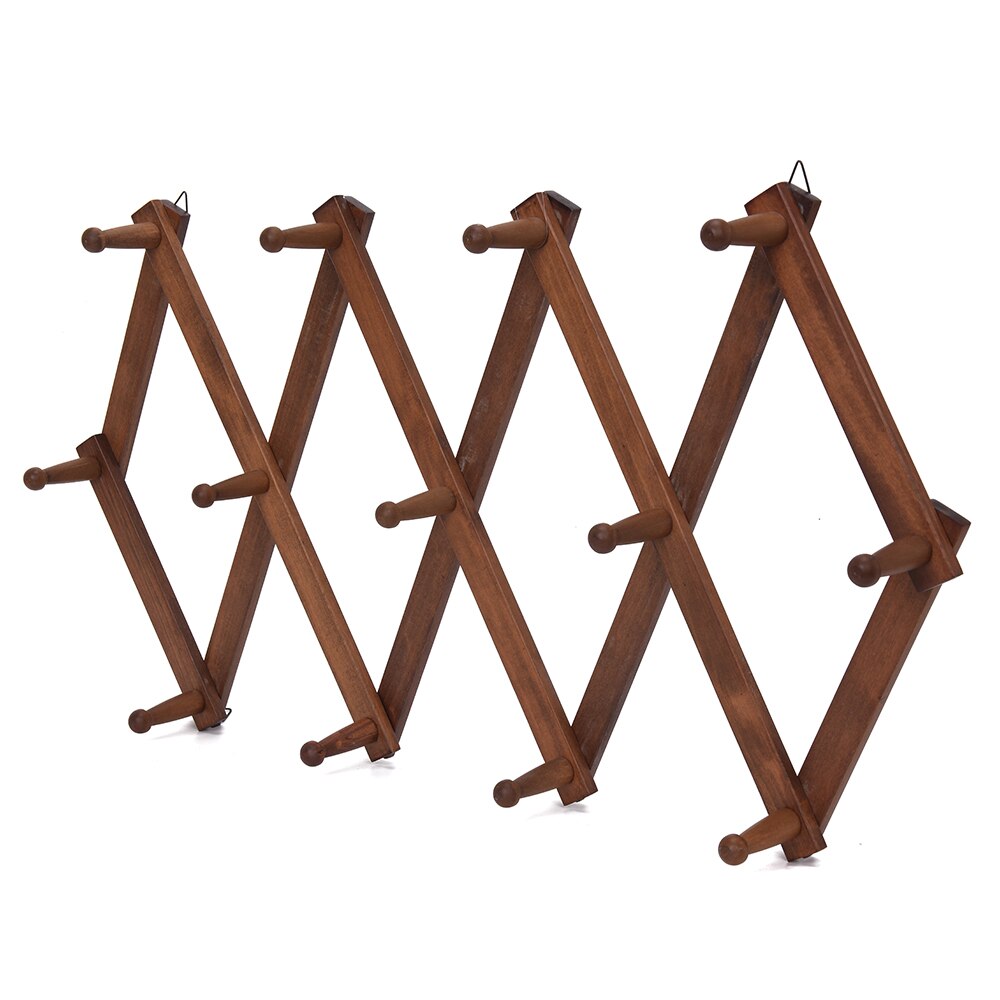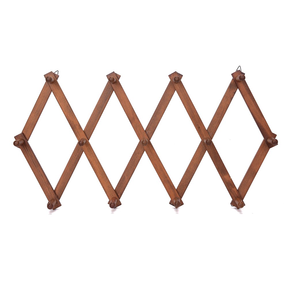 A decorative and functional storage solution, this accordion style wall rack features 13 pegs to hang your hats, scarves, bags, coats, umbrellas and more.
