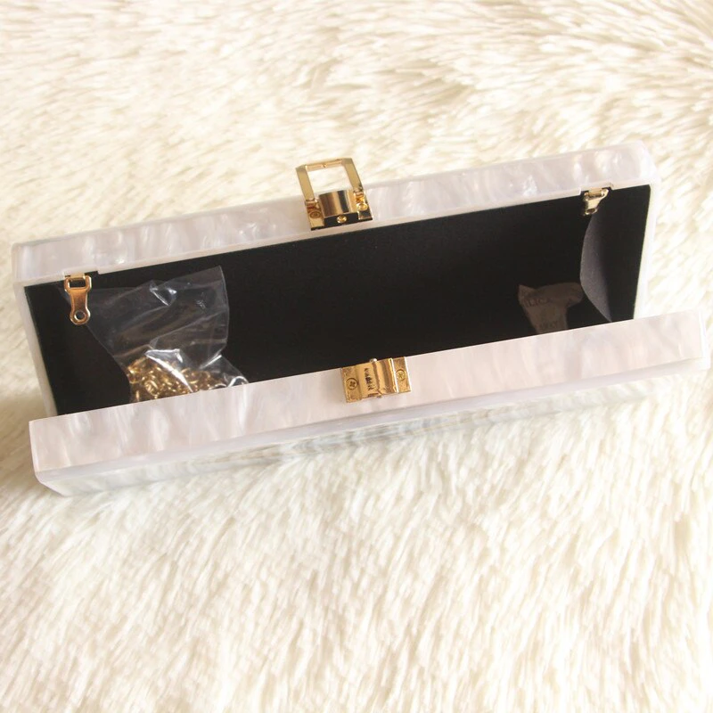 Finish your look with a unique accessory and make a statement with this acrylic eye box clutch.