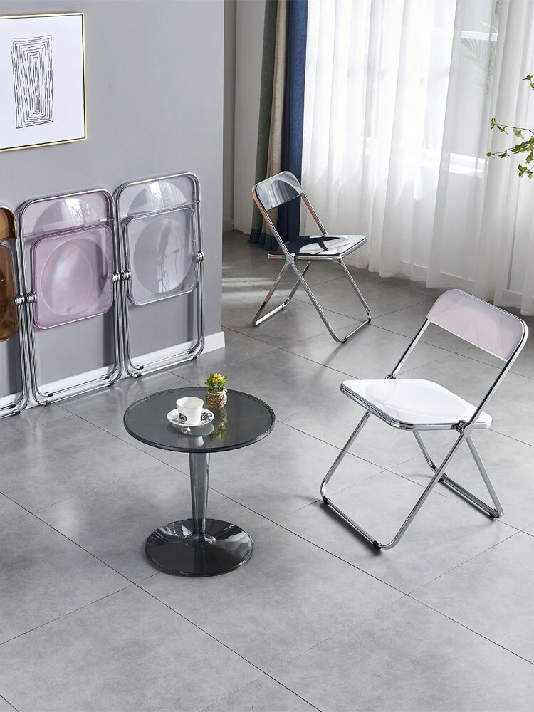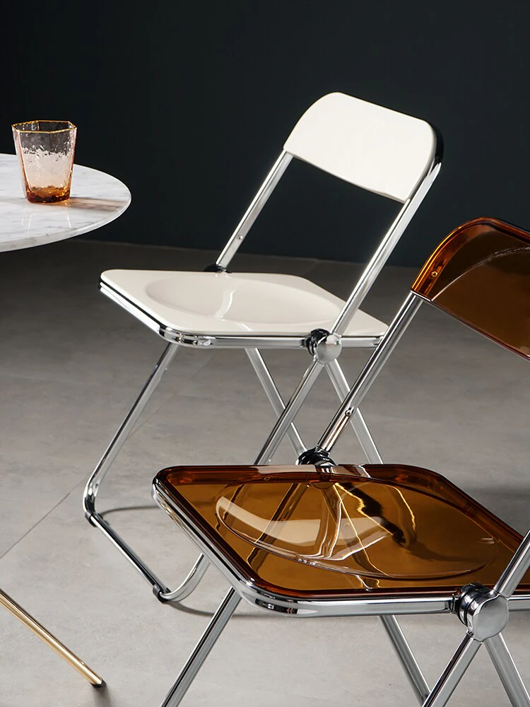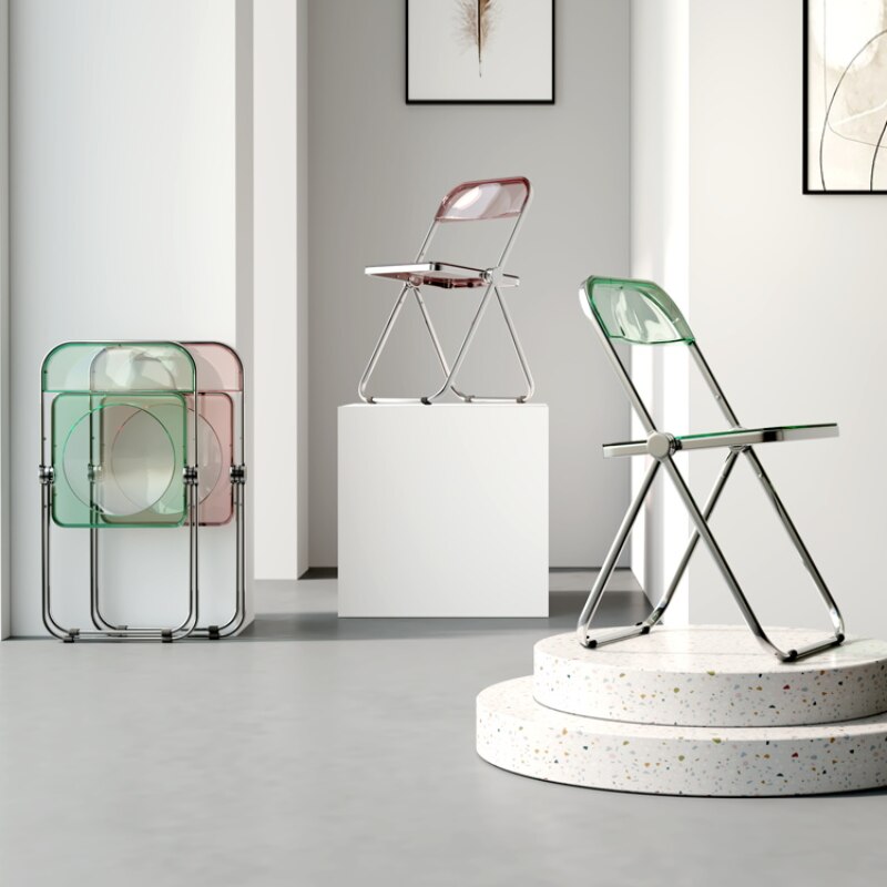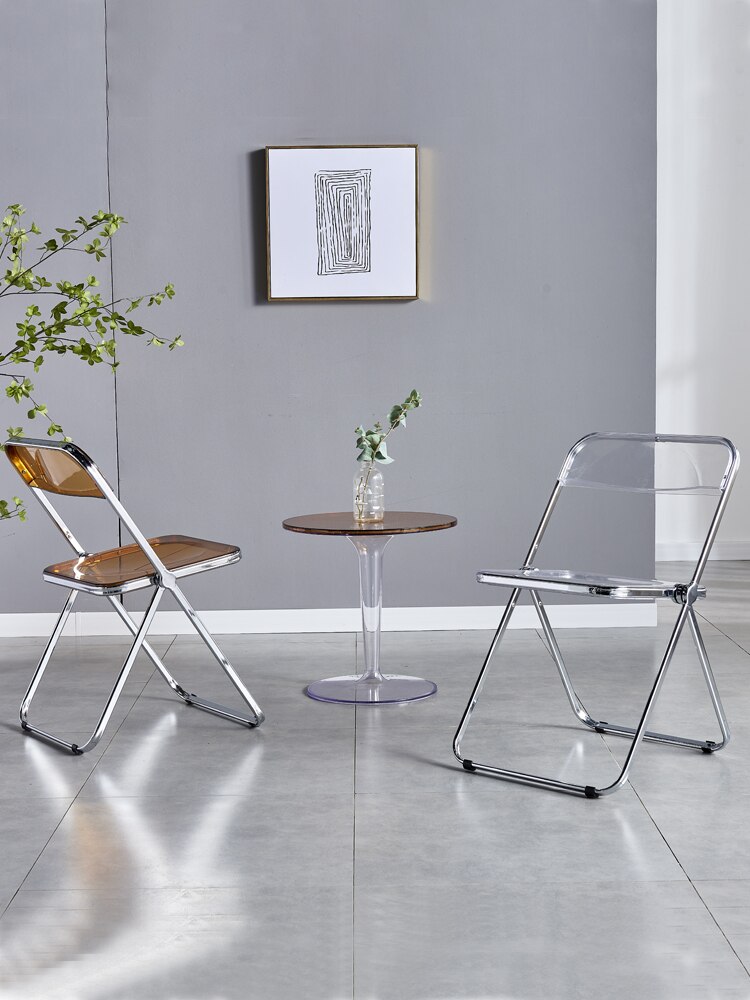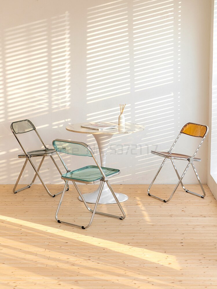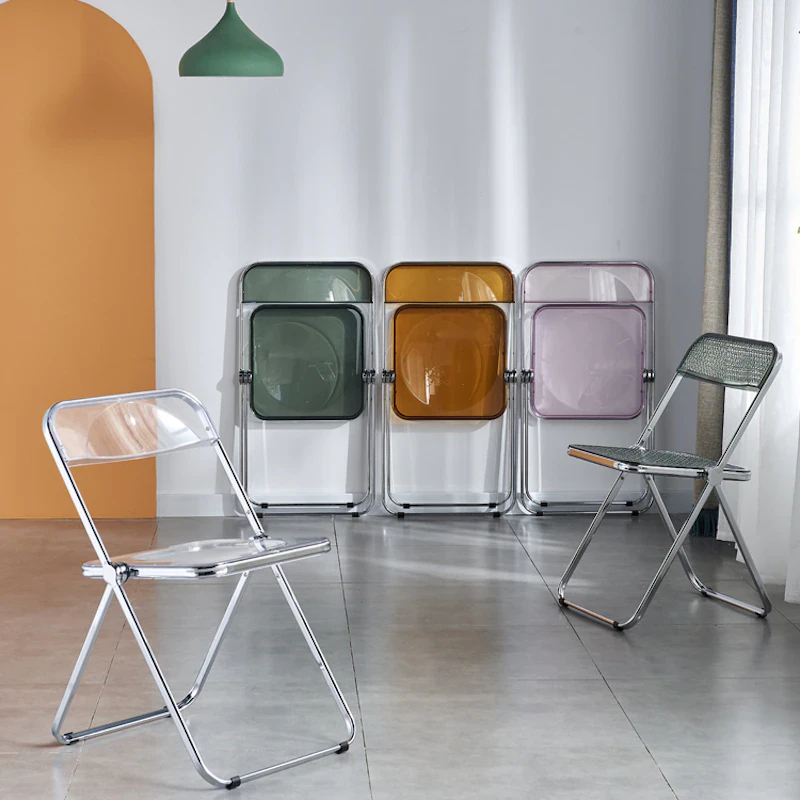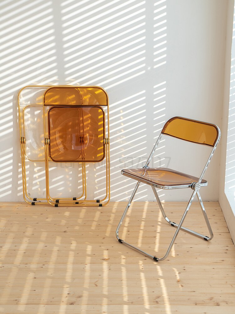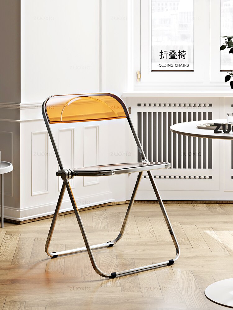 Completely refresh your space with these chairs. Made of transparent acrylic, with many different colour options, this chair will modernise any room. Save space by folding this chair away when you aren't using it, or keep it out to decorate with style and colour.