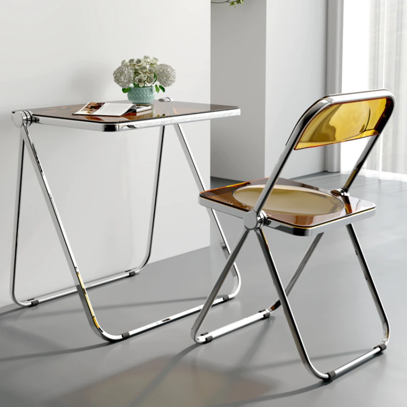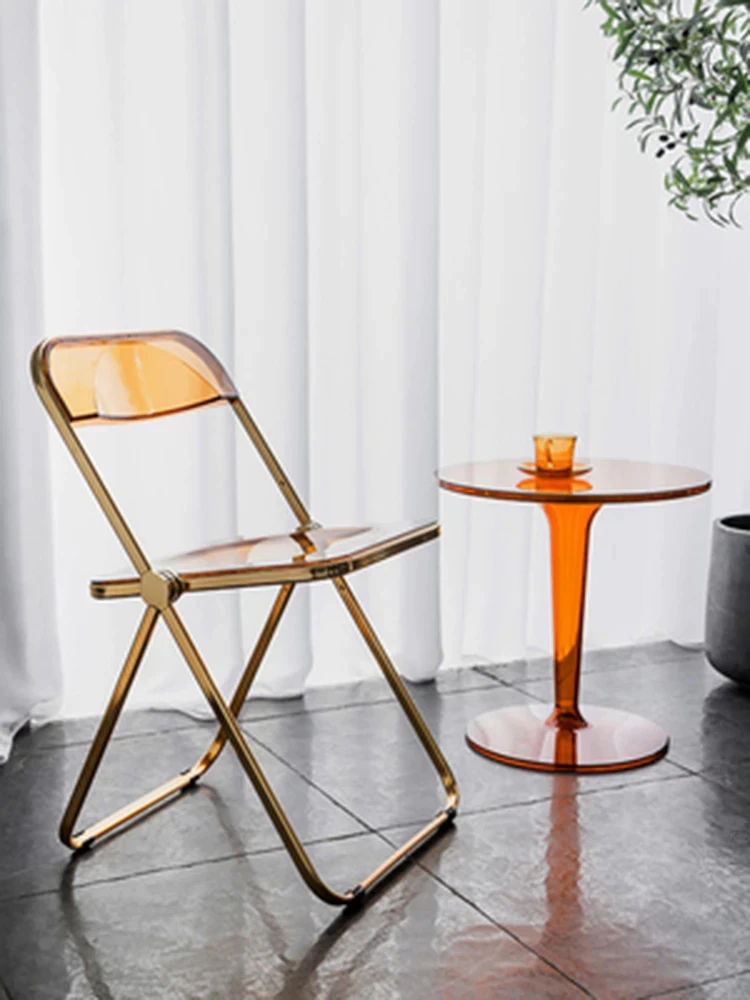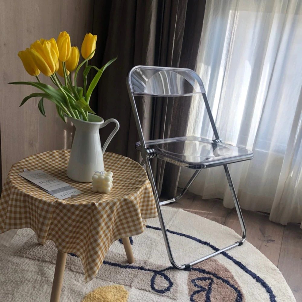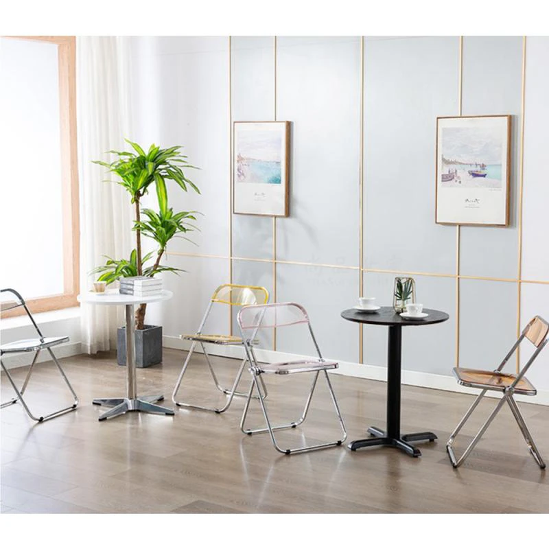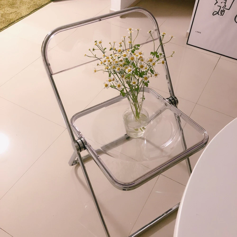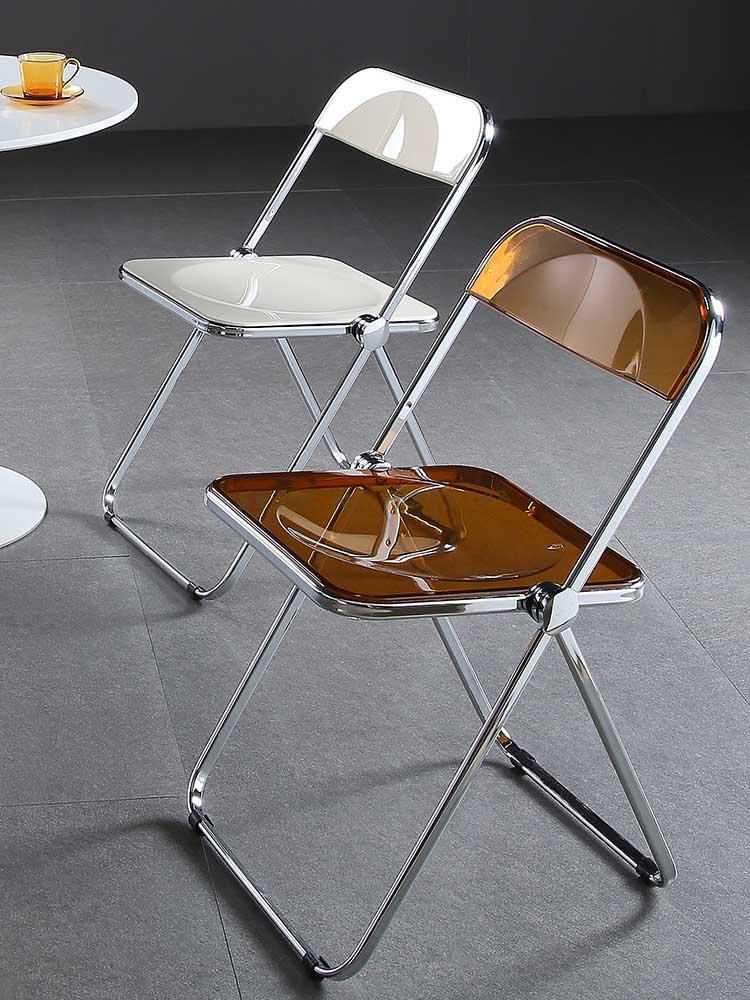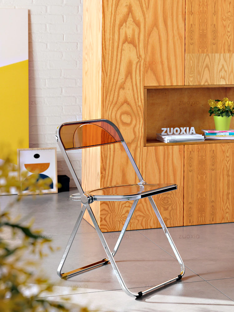 Completely refresh your space with these chairs. Made of transparent acrylic, with many different colour options, this chair will modernise any room. Save space by folding this chair away when you aren't using it, or keep it out to decorate with style and colour.