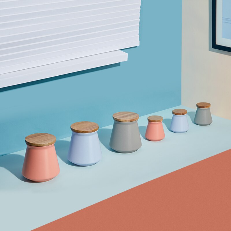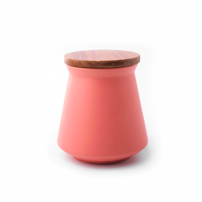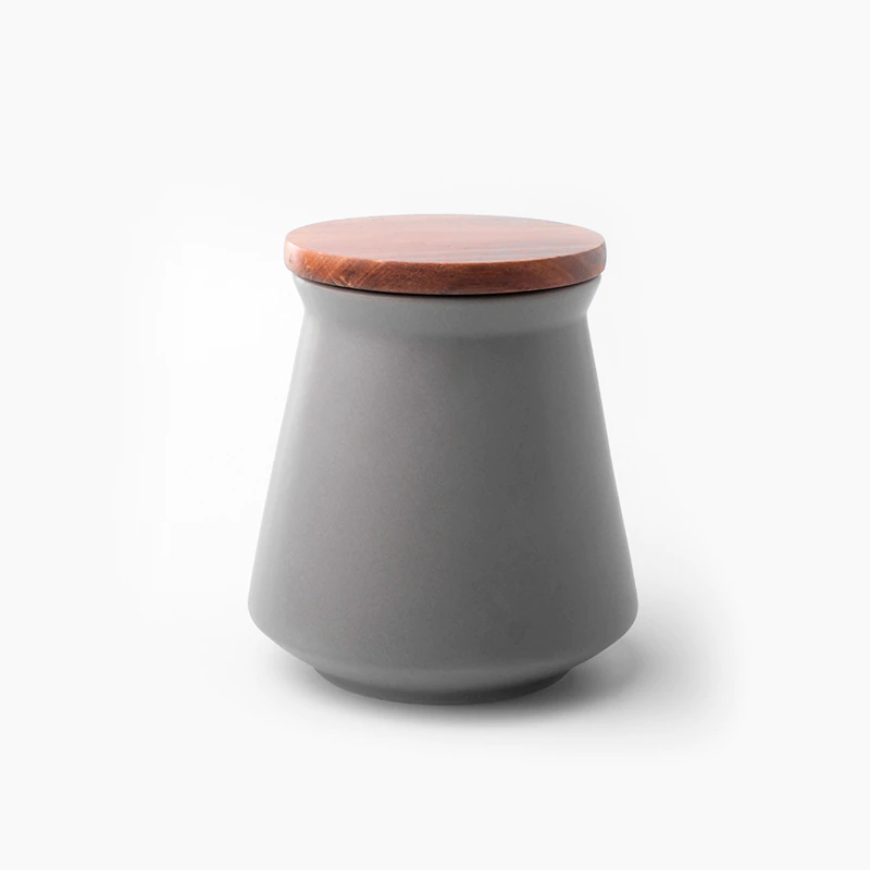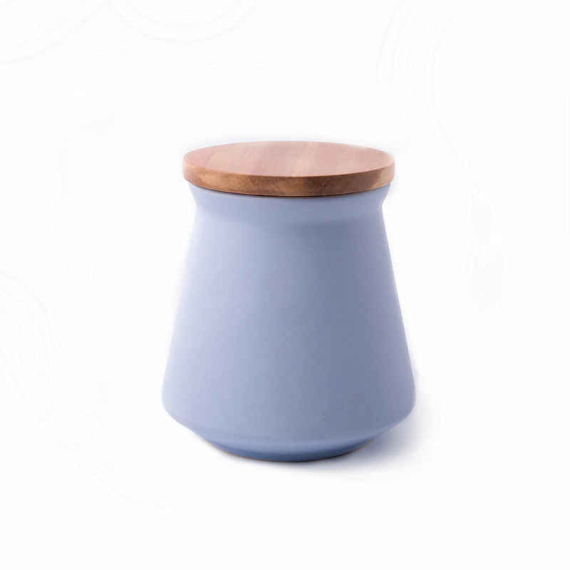 Made of durable ceramic material with a matte glaze, this ceramic jar is great for storing food and grains that need protection from light and moisture. Its wooden lid is lined with food grade silicon seal, making sure that the container is airtight and its contents are protected and kept fresh. Flavour is sealed in, just the perfect thing for preserving fresh ingredients and storing pantry items.
