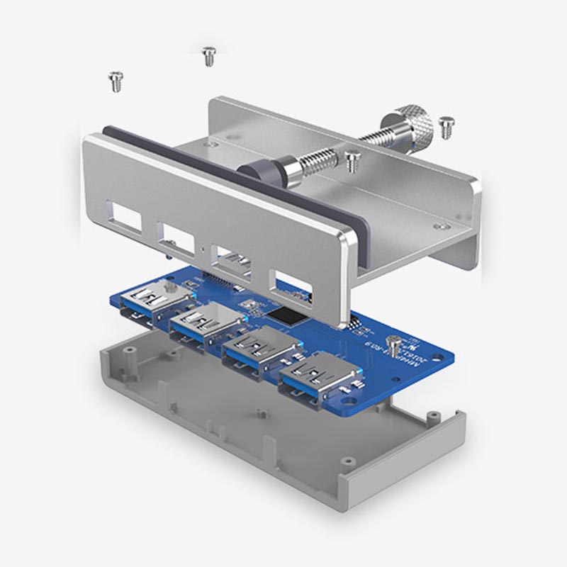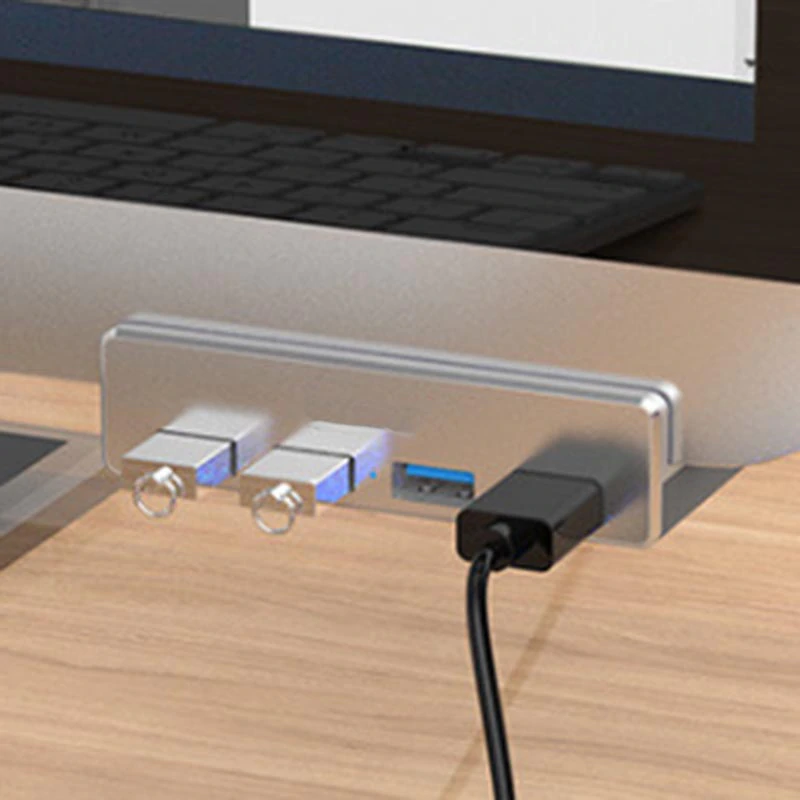 The aluminium USB hub clamp is a versatile and convenient way to connect multiple devices to your computer whilst keeping your desk top clutter free. The clip-on design makes it easy to attach to any surface, and the multiple port options allow you to connect multiple devices at once.