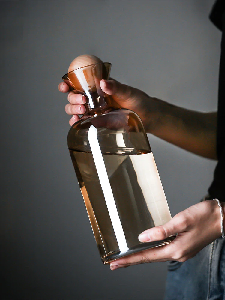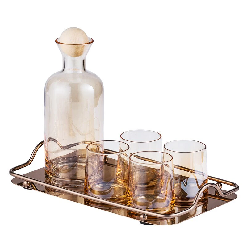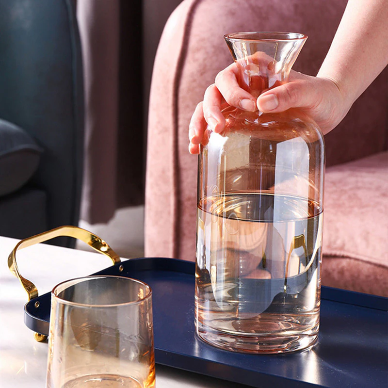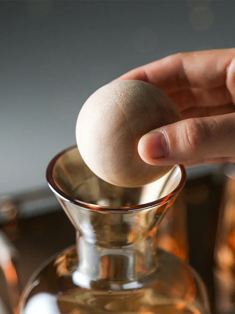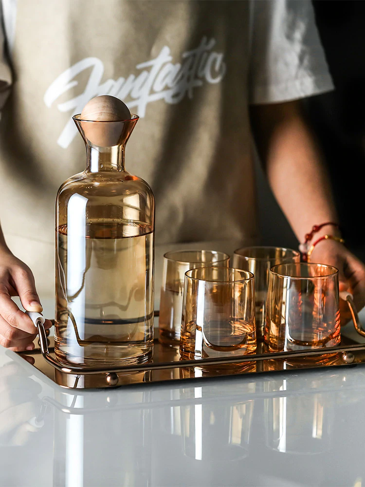 Impress your guests the next time they come over with fancy glassware, like this amber decanter and glass set.