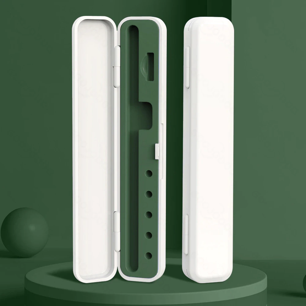 Available in four different colours. The outer shell is made of ABS resin, making a lightweight but protective case. The inside is made of silica to keep your pencil safe and tightly secure. The combination of these materials makes the case shockproof, so there's no need to worry if it is accidentally dropped.