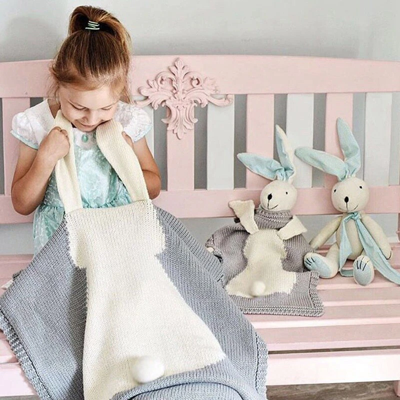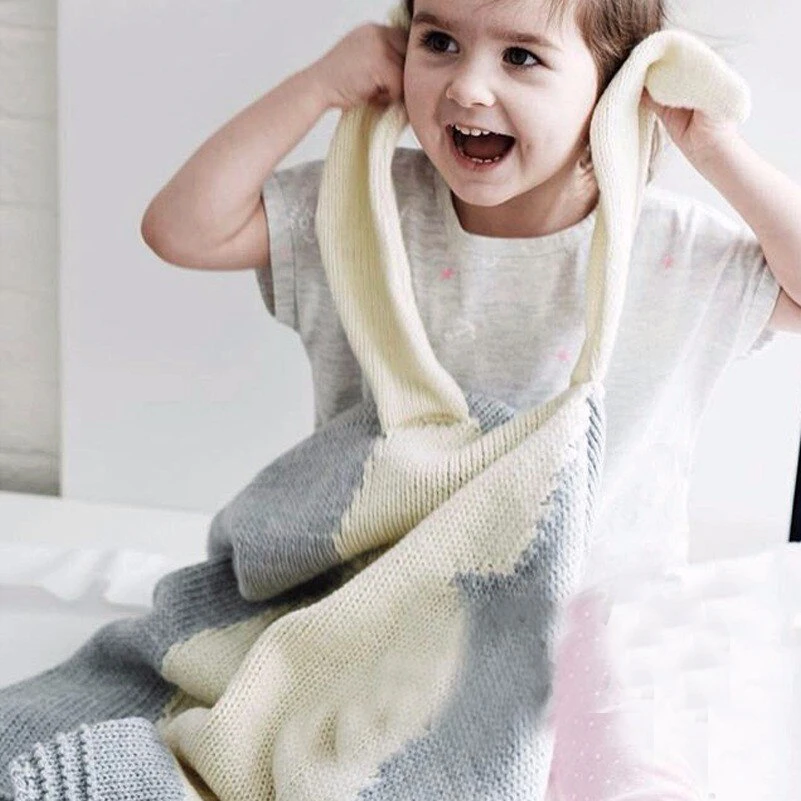 An adorable snuggly bunny quilt for your little one to snuggle up with. This knitted quilt is the perfect size for the crib, over the pram, or as a tummy time mat.