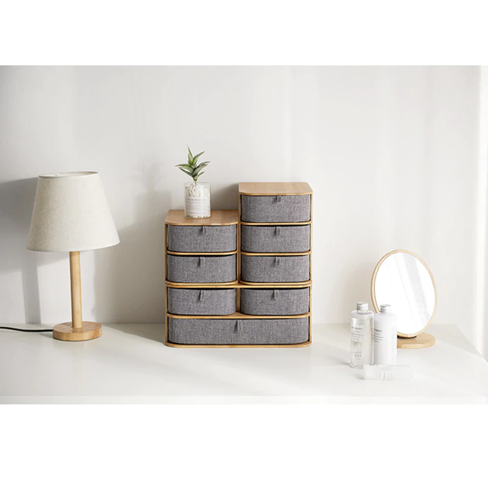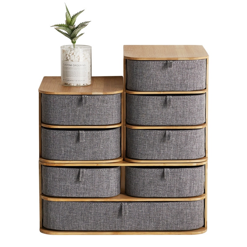 A great way to hide away any loose ends or non-photogenic belongings, made of sturdy bamboo and oxford cloth. There are fabric handles sewn on to the front of each drawer, so you can easily pull out the drawers. The different layer designs available mean you can mix and match, to form a set of drawers that fits your home or office space. The top of the shelf is great for placing decor, such as plants or photos.