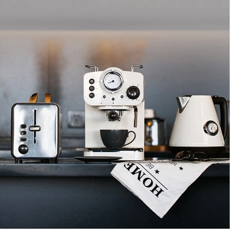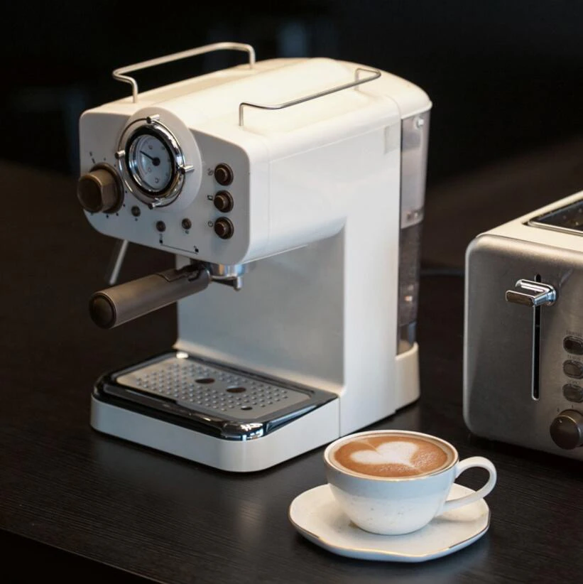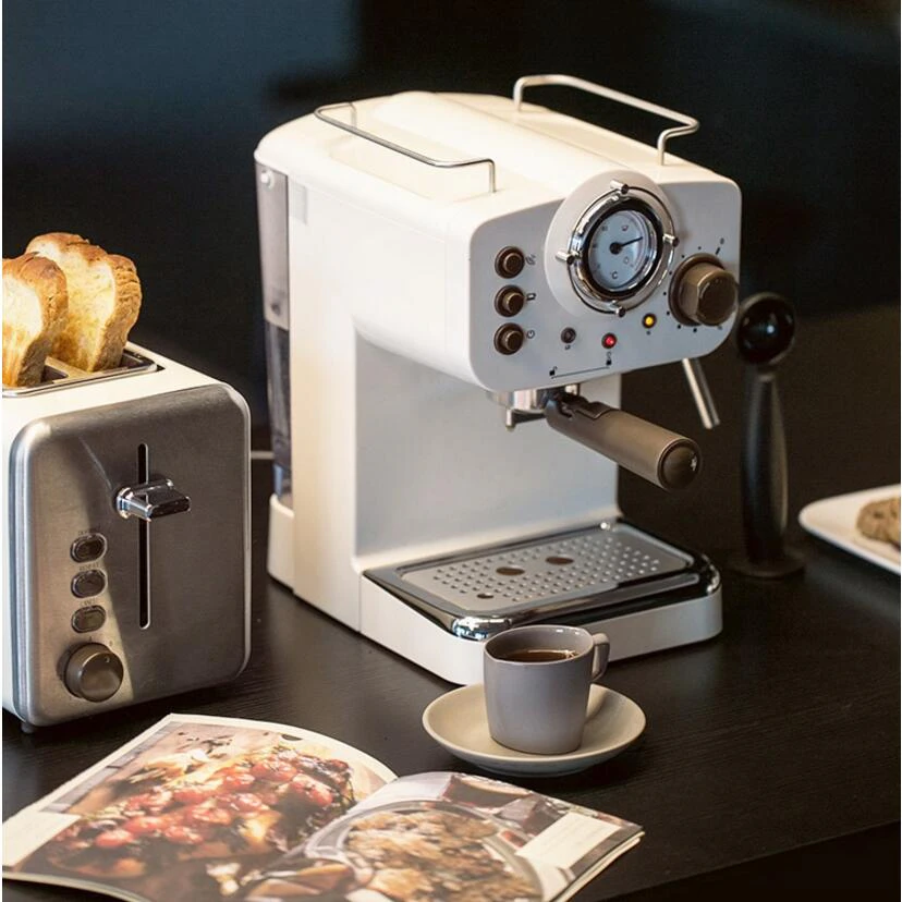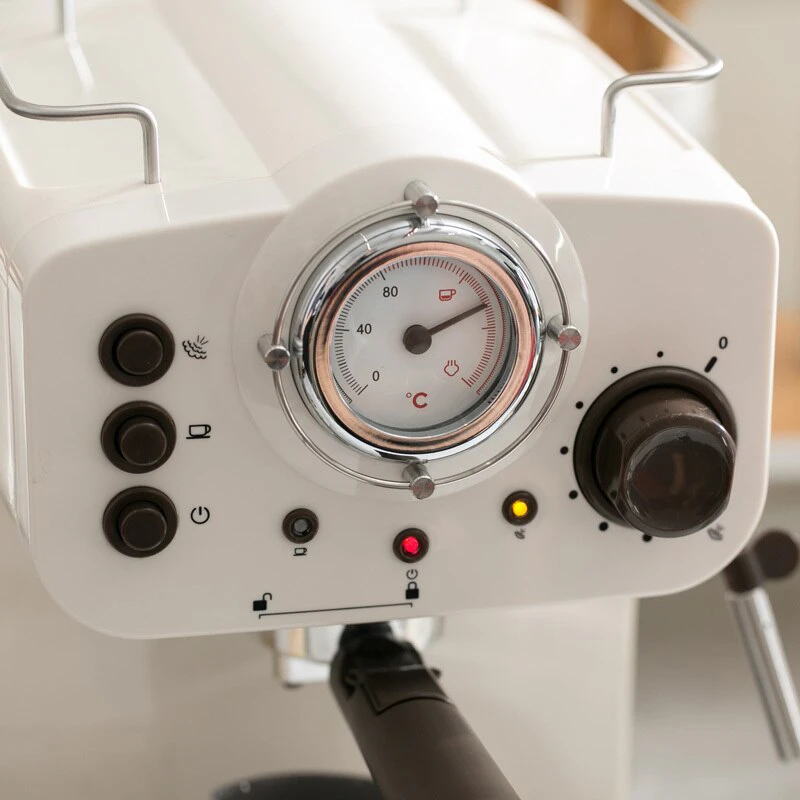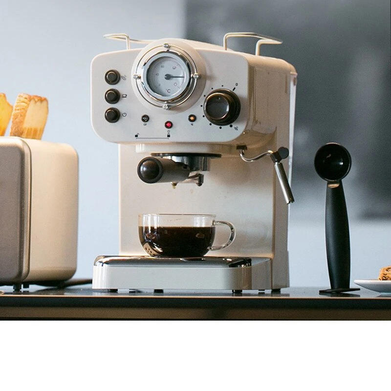 The Bench Top Espresso Machine is the perfect machine for a home coffee enthusiast who wants a well-built, easy to use, and stylish espresso-making machine. This 15 bar espresso maker features a retro style design with a semi-automatic operation, which means you can tamp and brew your espresso with the press of a button.