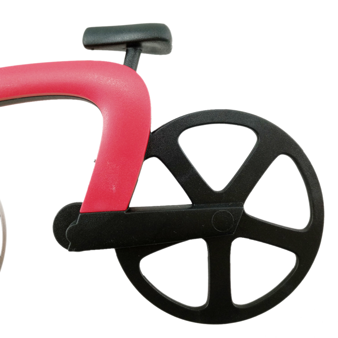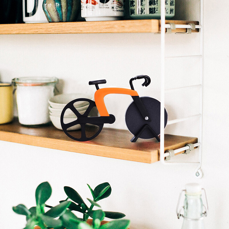 Pizza is a favourite of everyone's, but cutting it can often be a pain. This bicycle pizza cutter is not the typical tool to keep in your kitchen drawer. Still, beyond its unique and creative comical shape, it will help you cut up your pizza with ease. An ideal gift for any pizza lover, or for any cycling fan. The front wheel of the bicycle is a stainless steel blade, while the back wheel is plastic. A stand is included for the front blade to sit on, so you can safely and easily store it after use.