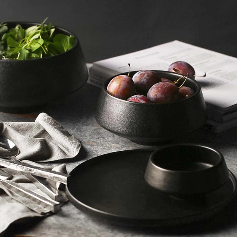 Impress your guests at your next home party with this black ceramic high bowl.
