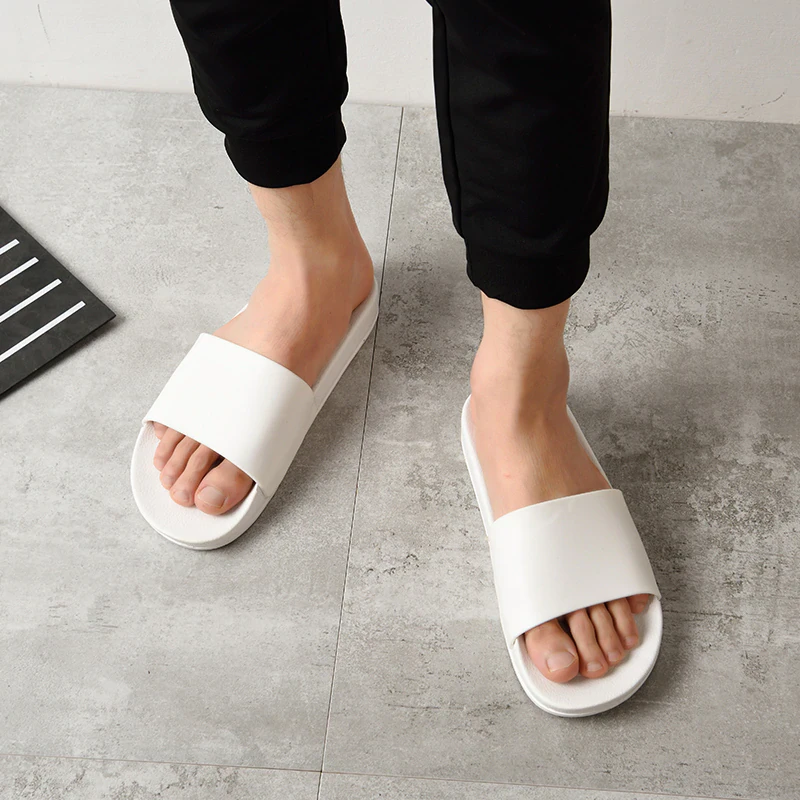 A wardrobe staple. These slides are versatile and are perfect for wearing in summer, going to the beach, or even chucking on when taking the rubbish out - because who can be bothered tying laces up for that? The soles of the shoes have grooves to prevent you from slipping, and the soft PVC material ensures they are comfortable to walk in. The slides are constructed to be lightweight, so you can easily take them with you wherever you go. Sizes available range from 7 to 11, or 24 to 28cm. Available in black and white.