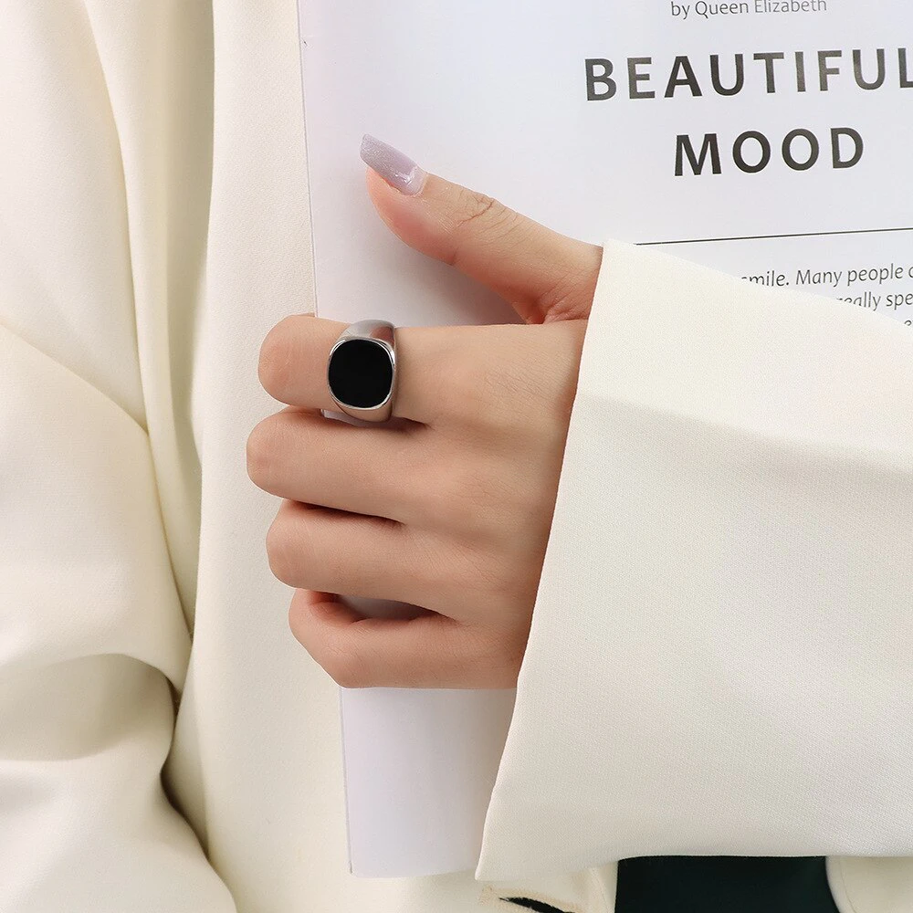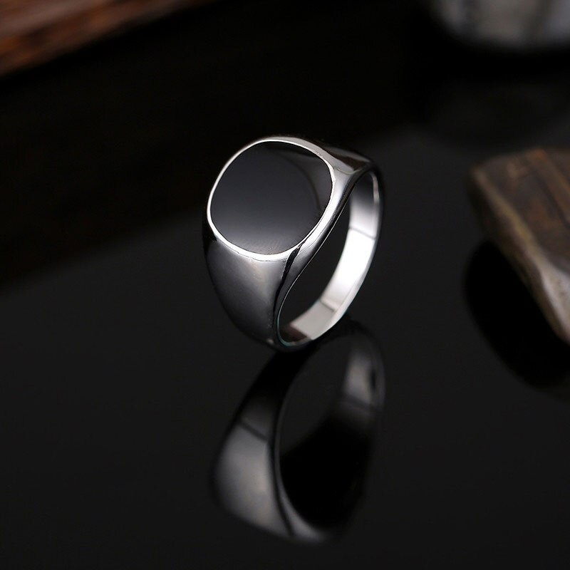 A simple and modern take on a classic ring style, this black rounded signet will make a great addition to your jewellery collection. Adorn your finger with a statement piece that's both trendy and timeless. Available in either gold or silver.