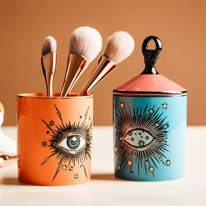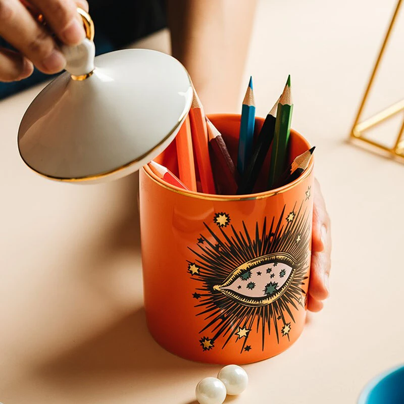 Inspired by Fornasetti art style, this storage jar makes for a fabulous statement piece on your dining table, bathroom dresser, bookshelf, or desktop.