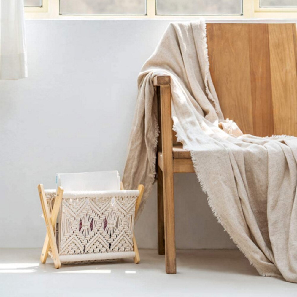 Are your magazines taking over the coffee table? This macrame storage rack is perfect for storing your newspapers and magazines and looks great placed on the floor beside your favourite reading chair or up on a desk. It's convenient slim design is perfect for decluttering your space whilst also adding to your decor.