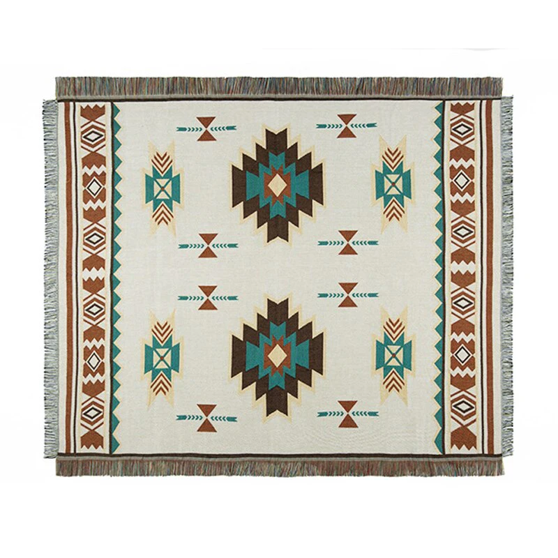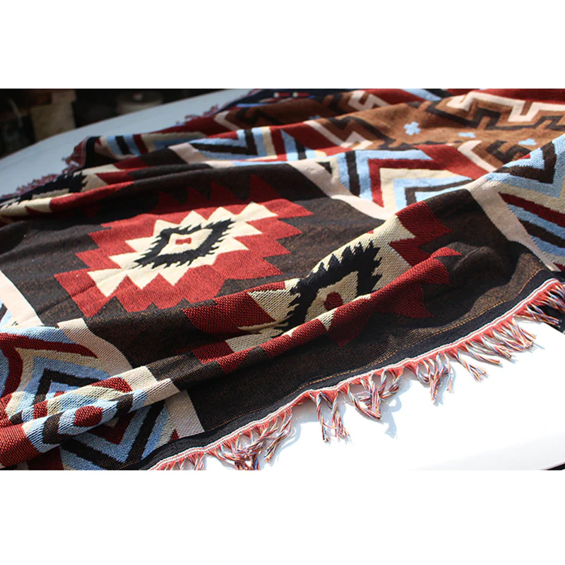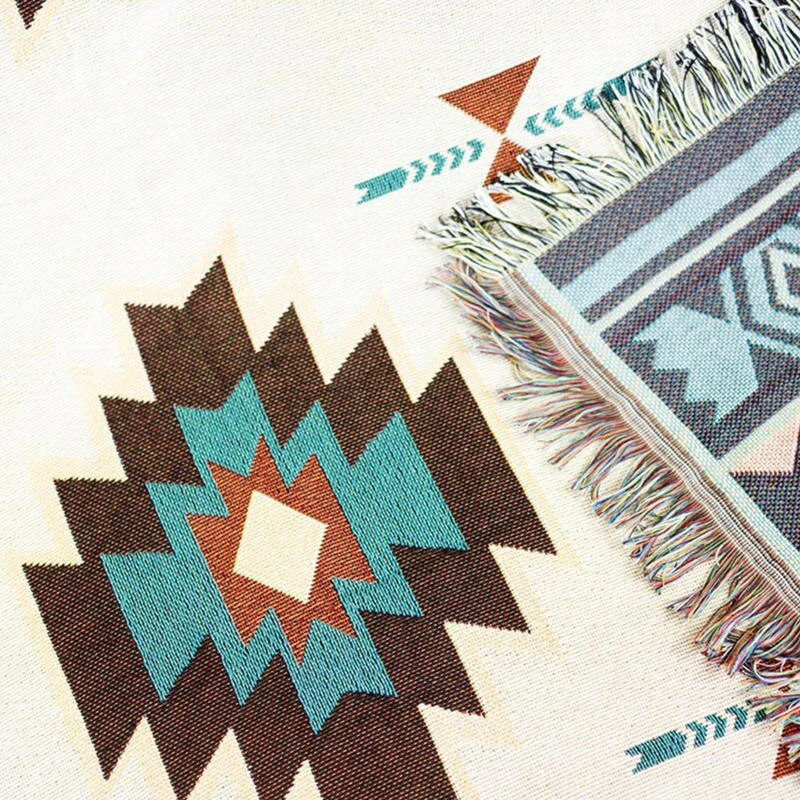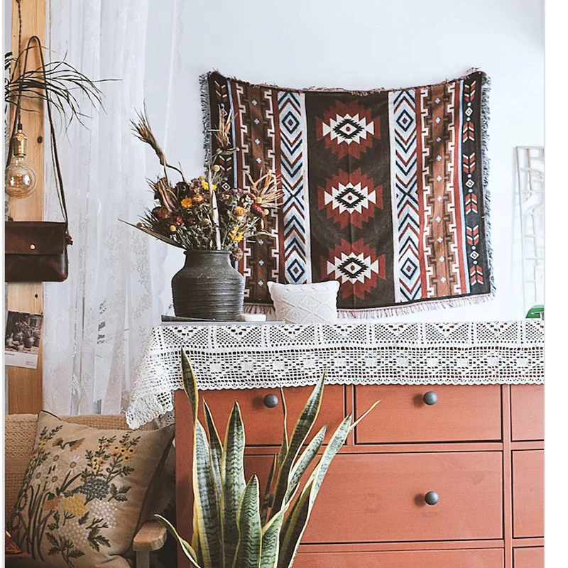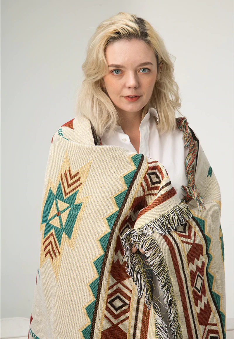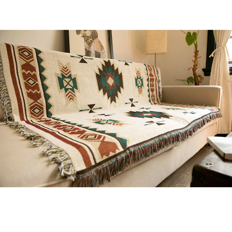 A trendy boho patterned throw that will add color to your home, perfect for decorating a couch in the living room or on a bed. The thick cotton will keep you warm in colder months and the high-quality stitching with an anti-pilling design will endure daily use. The throw is machine washable, however requiring a gentle wash to protect the fringe design. Measuring 130x160cm.