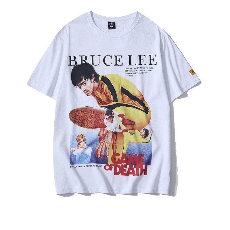 This stylish and comfortable shirt is made of high quality cotton material, and features a cool, retro-inspired design of Bruce Lee's Game of Death. A must have for any fan of the martial arts legend, this shirt is sure to turn heads and make a statement.
