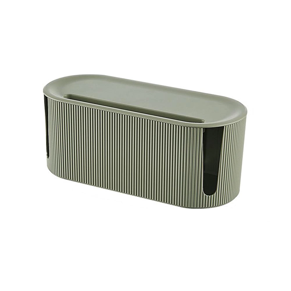 Designed to discreetly hide and organize your cables quickly and easily, simply place a multi-plug box inside the container and thread your cords through the hole on the side to charge and power your devices and electronics.