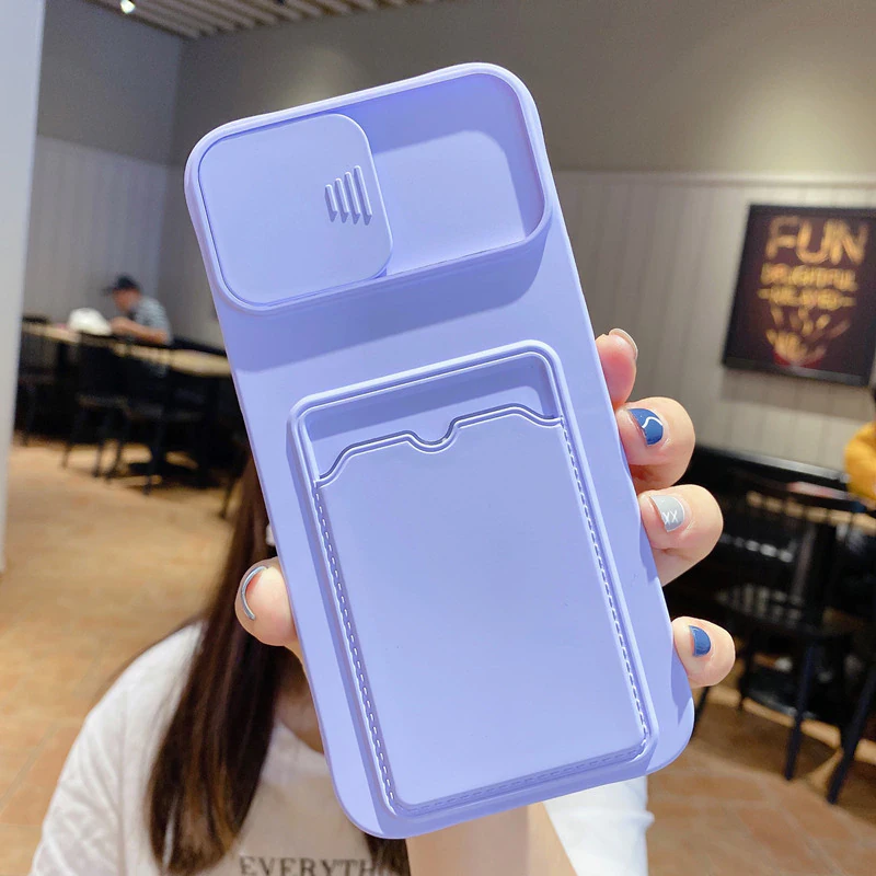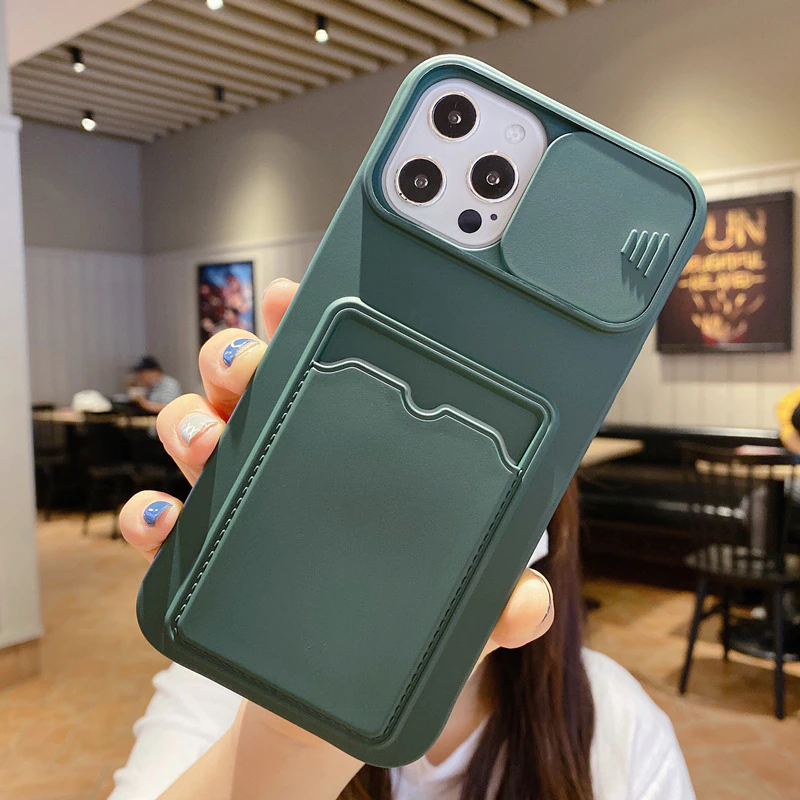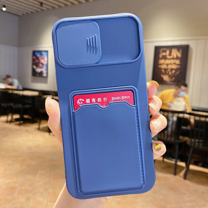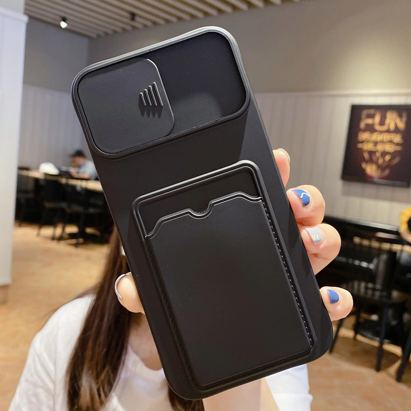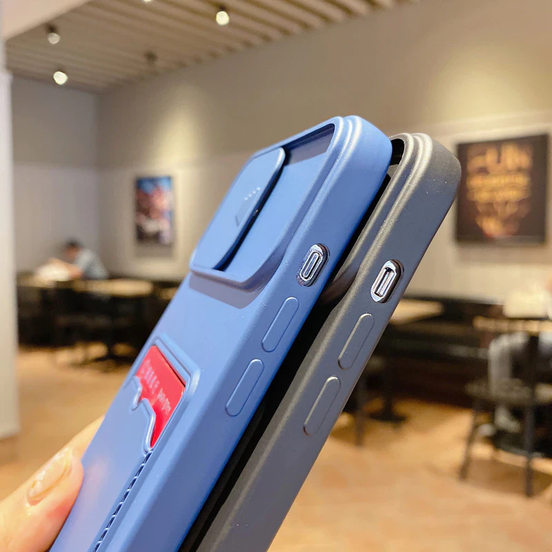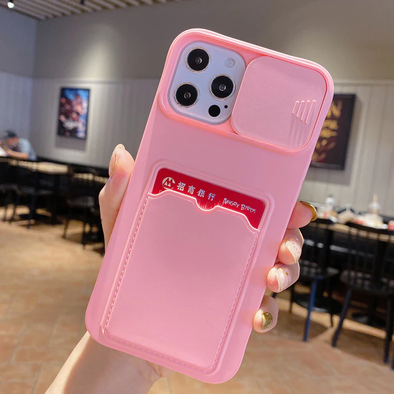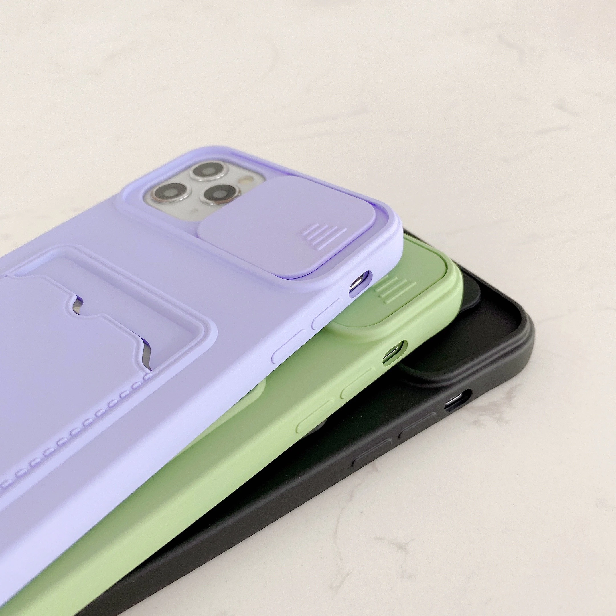 Protect your phone in style with this ingeniously designed iPhone case. Made from soft silicone, this smooth case protects your phone from dirt, dings and shocks, and features a convenient card pocket on the back as well as a lens cover that slides on and off to prevent your phone's camera from dust and scratches.