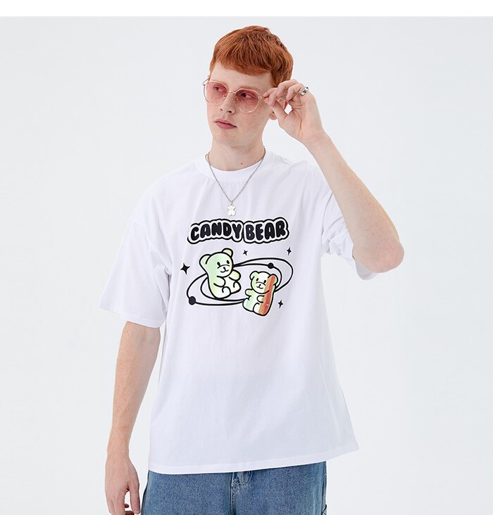 90's vibe candy bear tee looks great oversized as a dress or over swimwear in summertime. The colour of the tee would also pair well with a light denim. This tee is unisex, the sleeves can be rolled up and the tee itself can be tied up to make it shorter. Add a pop of colour to your wardrobe when you purchase this tee.