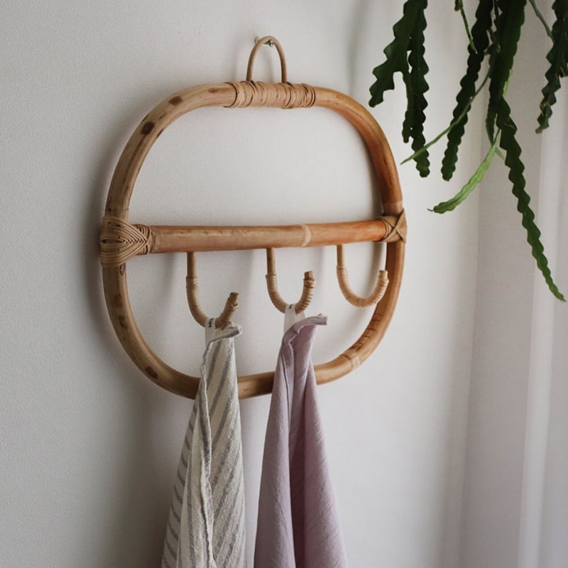 Made of natural rattan to compliment any style, they can be hung in any room to hang lightweight clothes, hats, scarves and more.