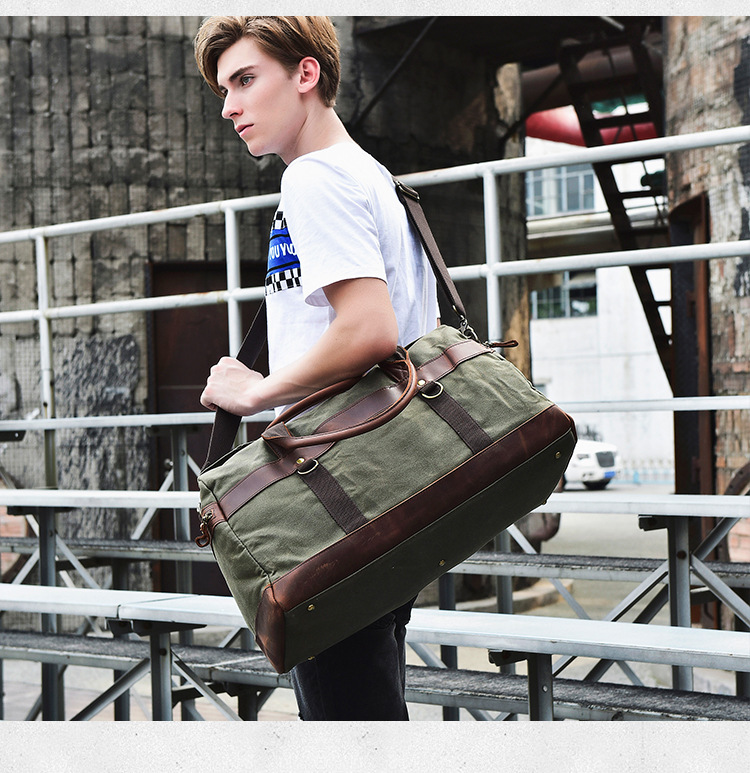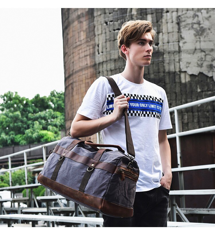 Constructed from canvas with leather detailing, this bag is the perfect size for travel and features smooth handles to easily carry the bag, or sling it over your shoulder using the included strap.