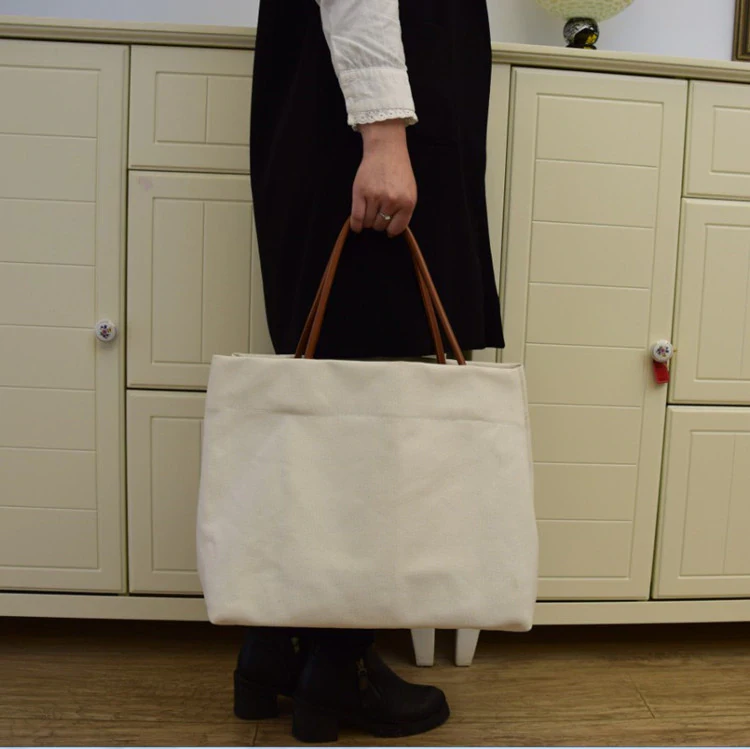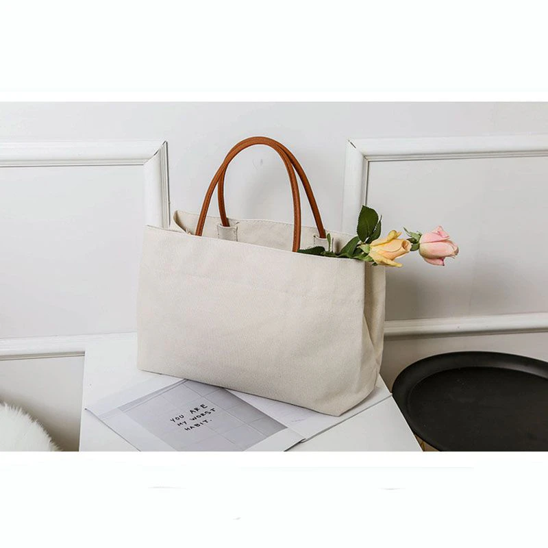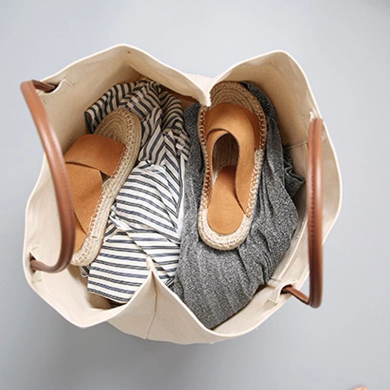 Made from durable canvas fabric, this bag is ideal for everyday use and has a wide no-zip opening that will carry an assortment of items. Minimal in design and generous in space, it will fit all your shopping items, from large fruits to long-stalked produce to a whole baguette.