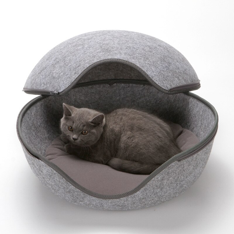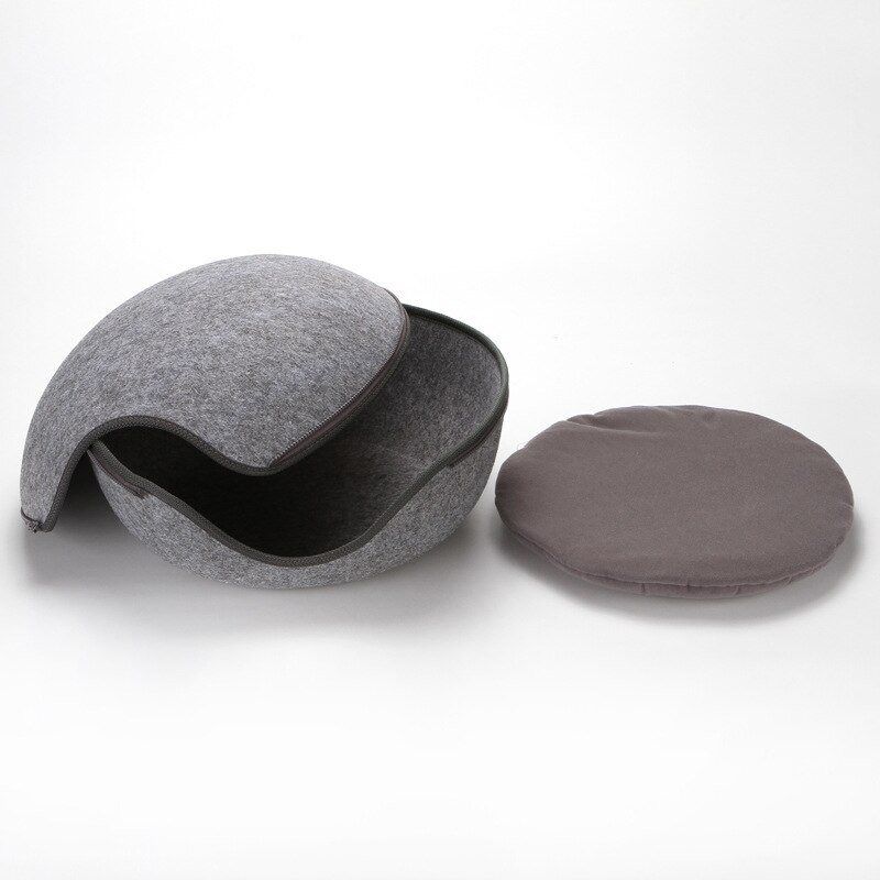 The purrrfect cave for your wee fur baby to snuggle up in, this cat shell nest bed is made from soft, lightweight felt and features a removable cushion in the inside, and a detachable lid for easy cleaning.