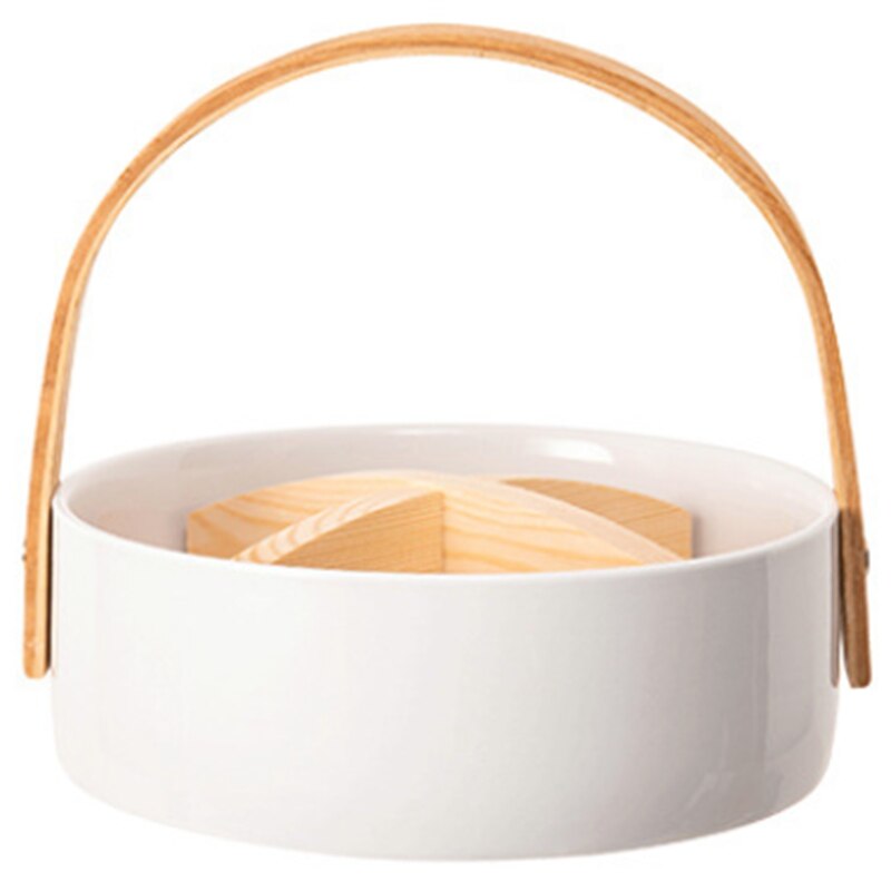 The design is versatile, with a modern white glossy ceramic finish and smooth wooden handle and grid. This design is versatile and will complement any kitchen, office or room. The handle is fit by two discrete screws, so can be adjusted to stand up by itself or it can be placed down to fit to the side of the tray. This tray makes organization easy and visually appealing.