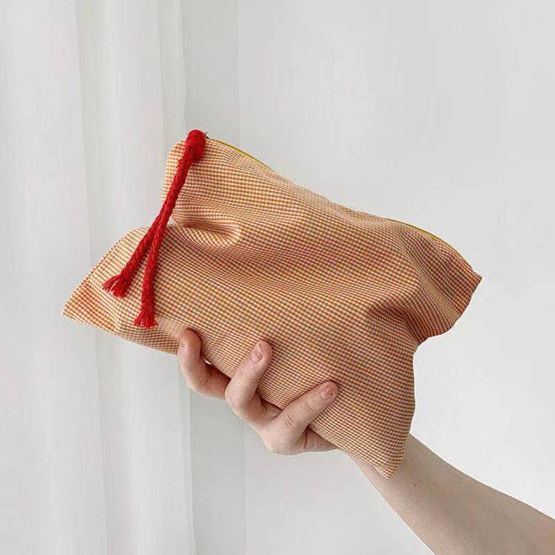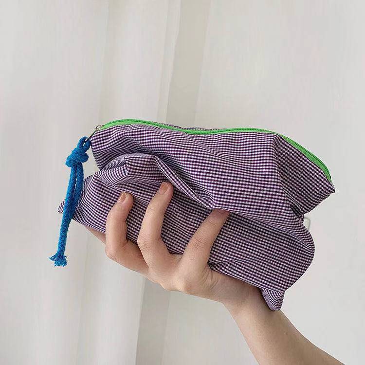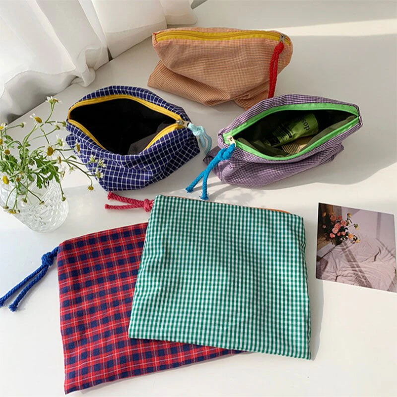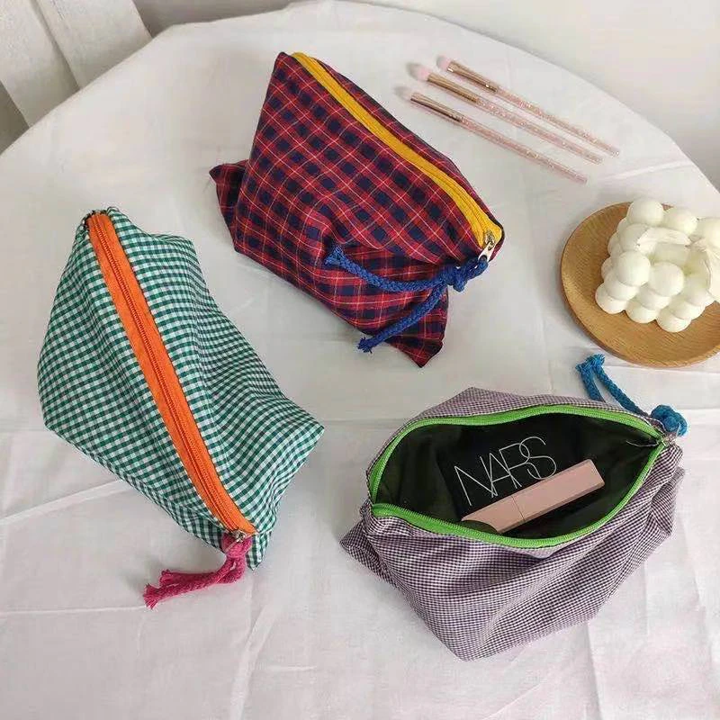 Store makeup, jewellery, toiletries and skin care products in style with this super spacious pouch which holds all of your essentials. Made from soft cotton, this bag is conveniently compact, making it perfect for travel. This pouch would also happily hold your keys, cards, cash, and ID - ideal for a girls' night out.