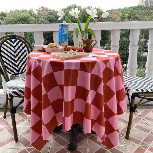 Enhance your dining table setting with this retro inspired checkered tablecloth. Protects your table whilst bringing a pop of colour to your space. Features a colourful contrast lattice design and is available in a range of sizes.
