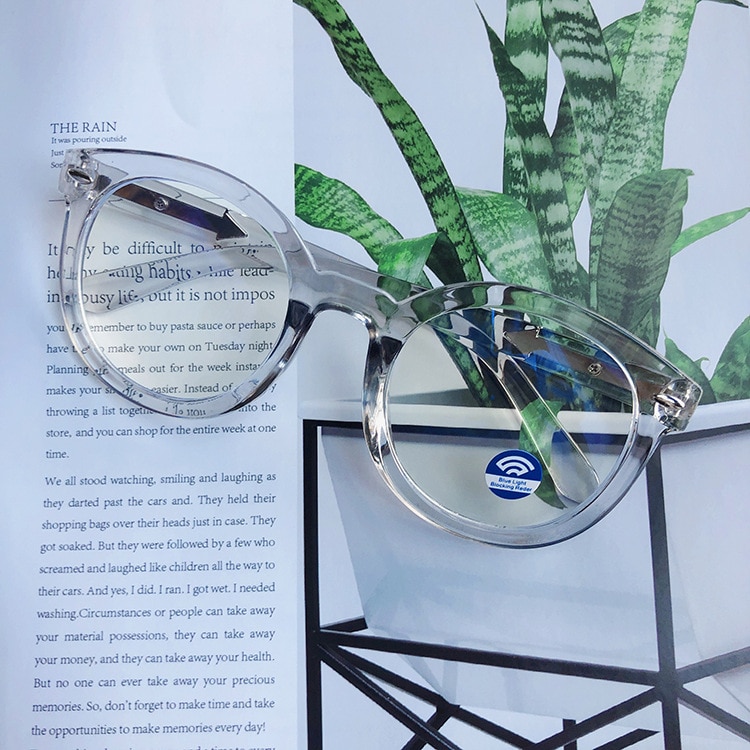 Protect your eyes from harmful blue light with these clear round lens glasses. The lightweight alloy frame makes them comfortable for all-day wear, while the anti blue light technology reduces eye strain and promotes better sleep. The clear lens design is stylish and versatile, perfect for both work and play. Say goodbye to tired eyes and hello to clear vision with these glasses.