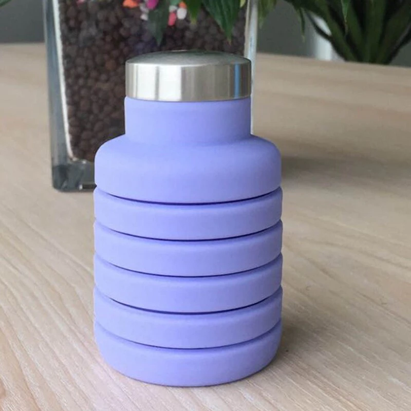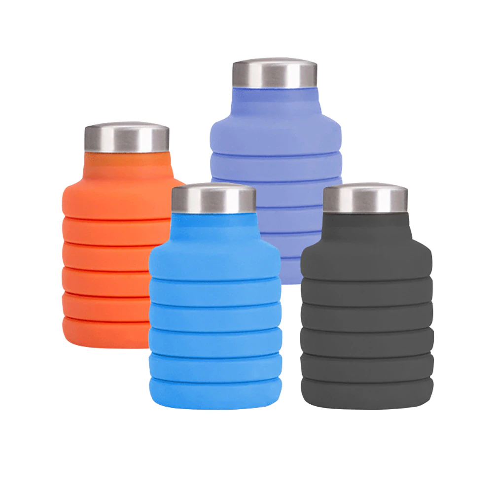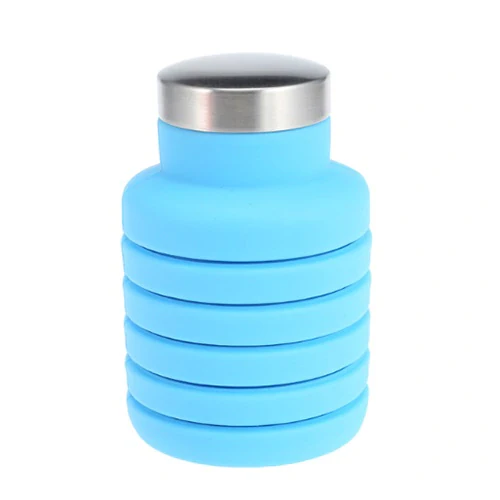 A bottle with a collapsible and lightweight design to take with you on your next adventure. Free from BPA and made with food-grade silicone, this water bottle doesn't sacrifice safety. Great for keeping in your bag, the silicone body collapses when pushed down, becoming a compact 225ml bottle size. To expand the bottle to its maximum 500ml capacity, simply lift the lid part of the bottle and stretch it out. The lid is made of metal and seals via screwing. Comes with a handy carabiner attached to the lid, so you can clip it onto a bag for easy portability.