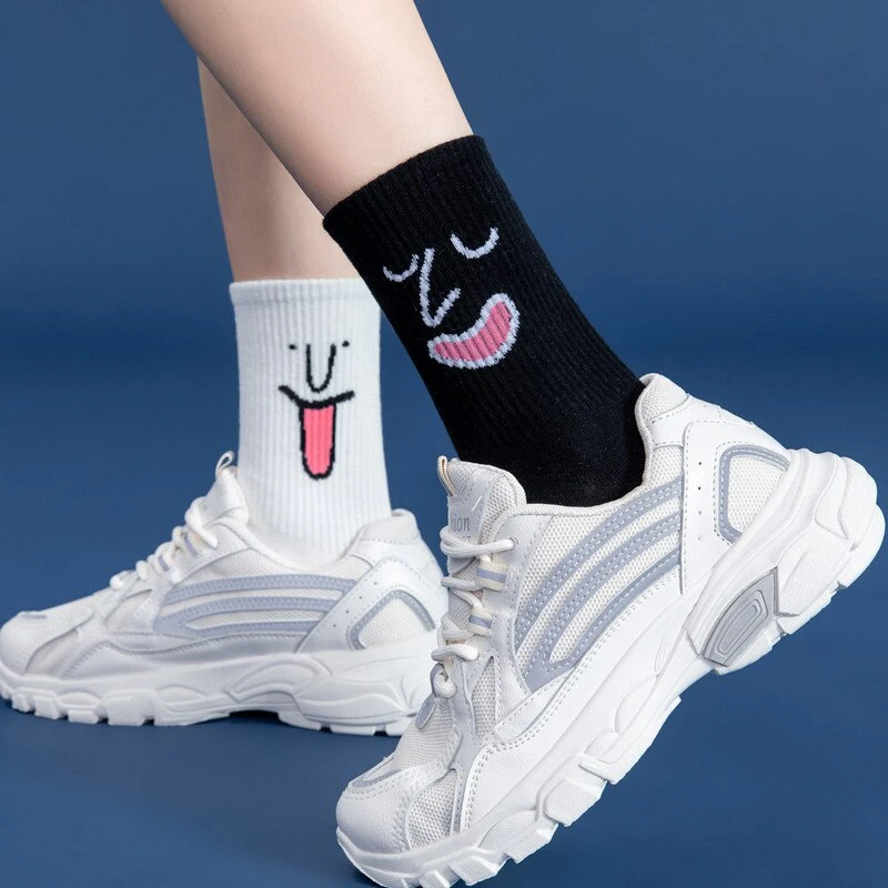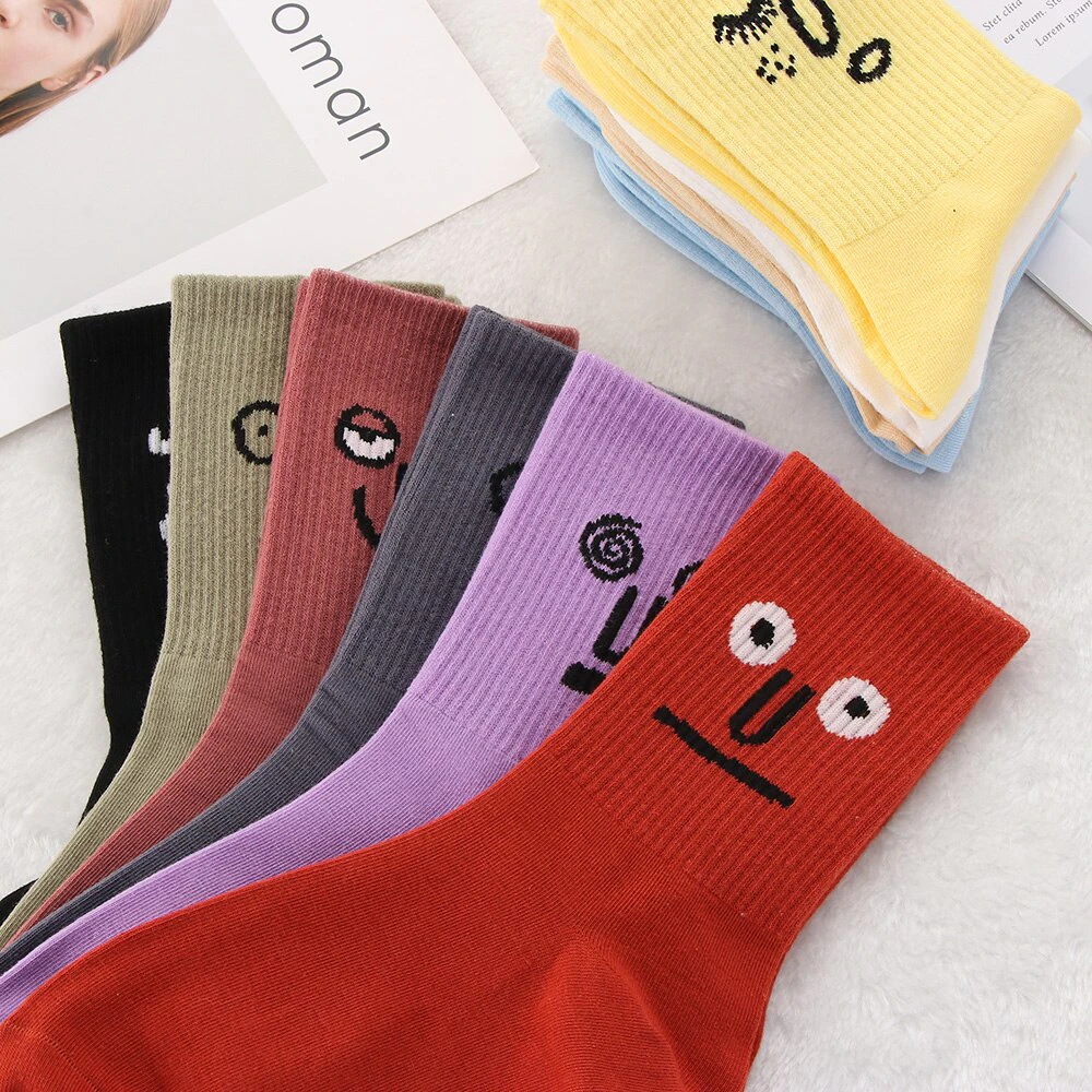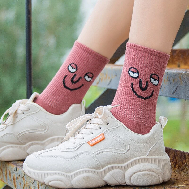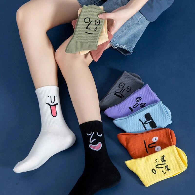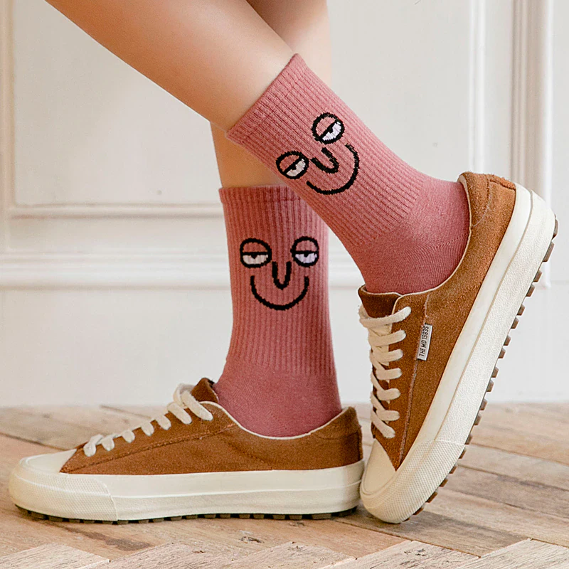 Add some colourful fun to your outfit with these bright socks featuring hilarious faces.