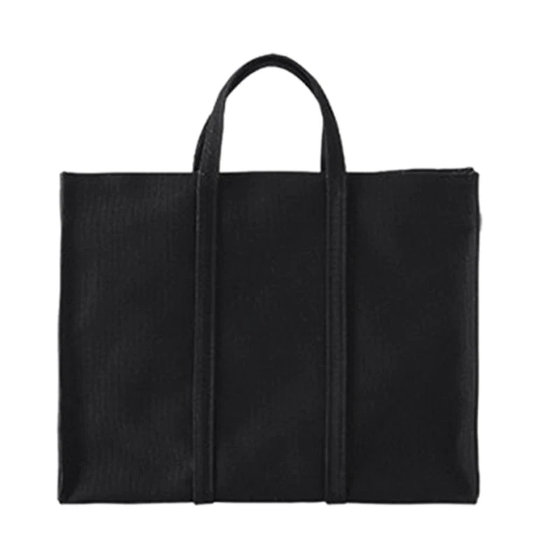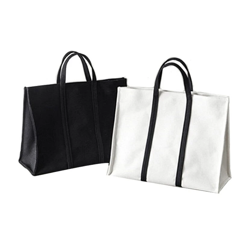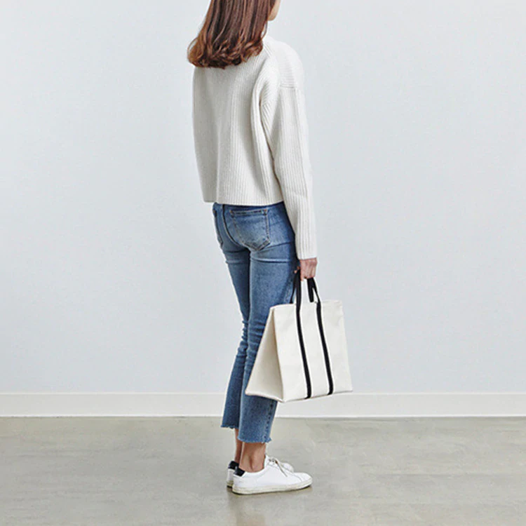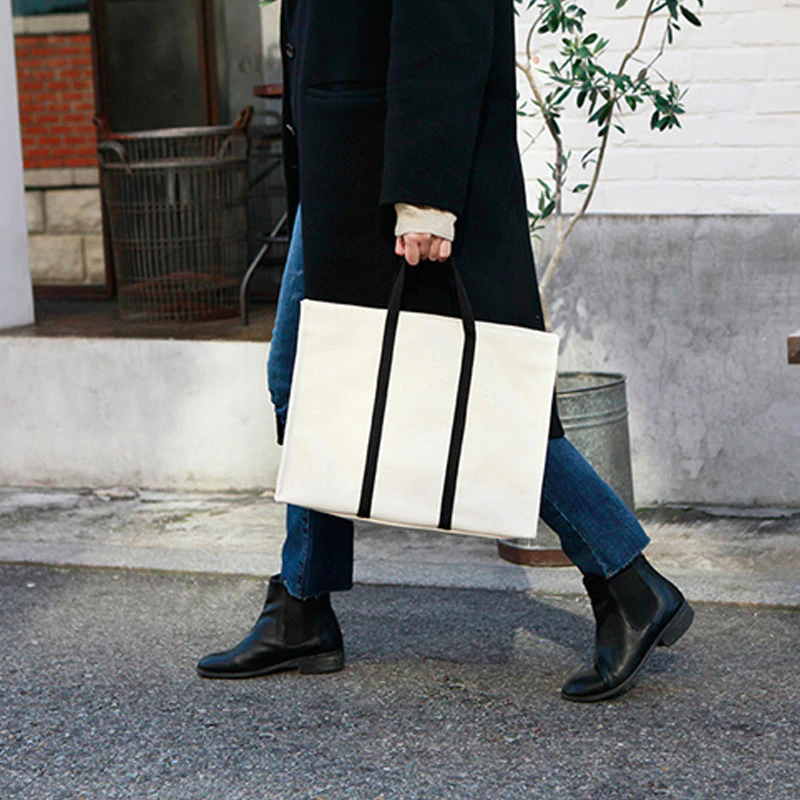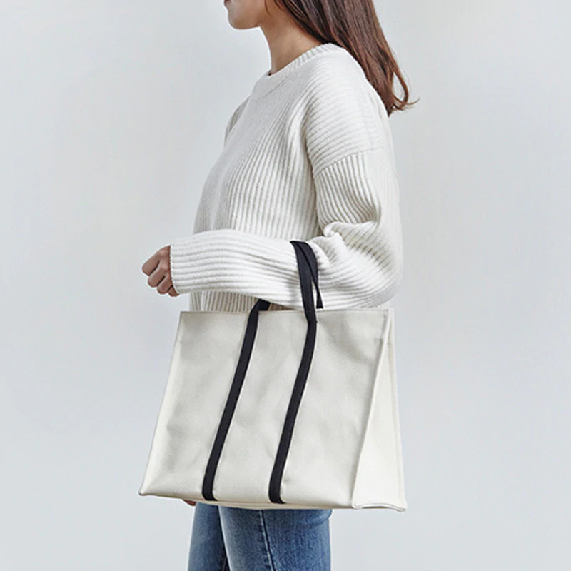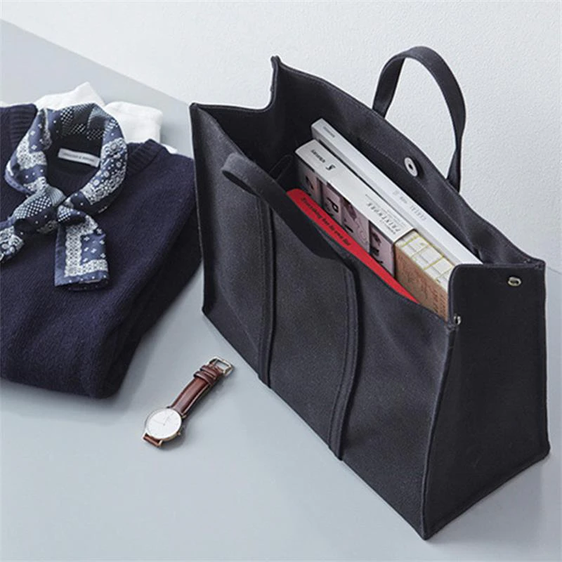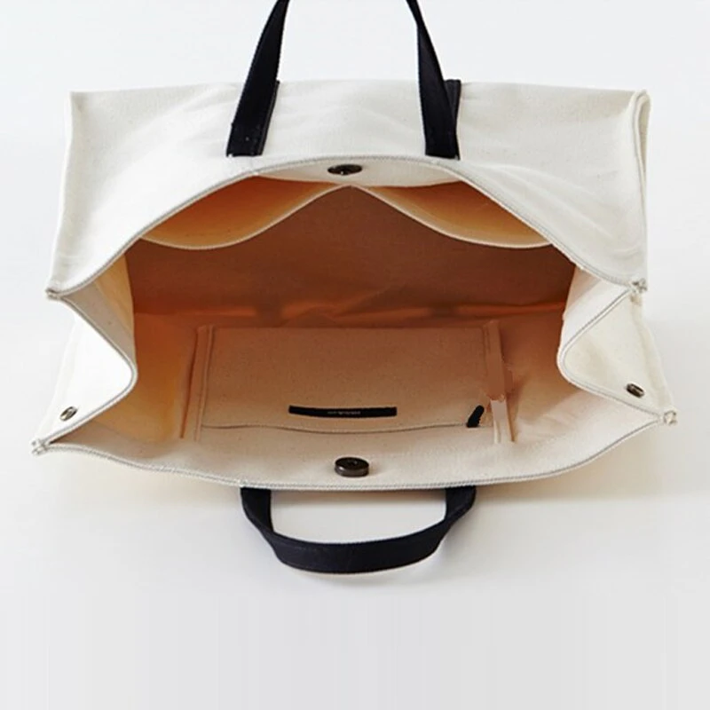 This canvas handbag is versatile, for everyday use. Built-in is a magnetic fastening buckle for easy opening and securing of the bag, which is super helpful when you are in a rush. There are three interior pockets, one with a zip and the other two without, to help you organize your belongings. The bag is compatible and can be folded for easy storage in your car or home before you need it, such as for getting groceries or taking your lunch to work. The handles are sewn right down to the base of the bag for a unique design. The flat base means it can stand up by itself, which is handy for packing and unpacking the handbag.