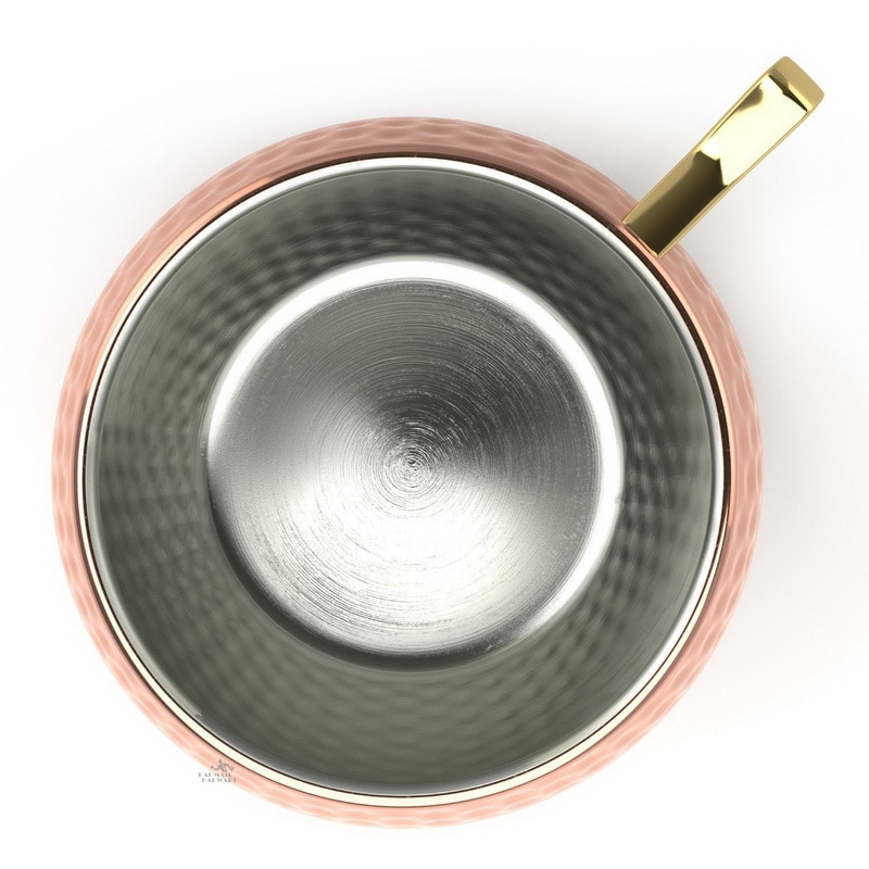 Enjoy your favorite cocktails in style with this copper Moscow mule bar mug. With a generous 550ml capacity, you can indulge in a satisfying drink without constant refills. Crafted from durable copper material, this mug is built to last and will withstand the test of time. The hammered texture adds a touch of elegance and sophistication to your drinking experience. Whether you're hosting a party or simply unwinding after a long day, othis Moscow mug is the perfect addition to your home bar collection. Savor every sip and elevate your cocktail game with this exquisite mug.
