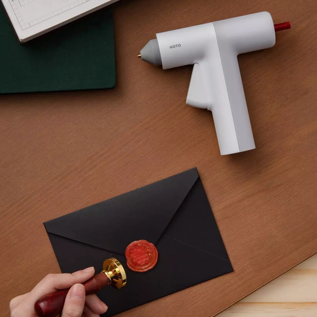 This Cordless Hot Glue Gun is designed to be lightweight and easy to use. It heats up in seconds, allowing you to get the job done quickly and efficiently. This is a must-have for DIY, hobbies, and crafts. It's also a great tool for anyone who enjoys woodworking and other projects in the workshop. This portable, cordless hot glue gun has a 4V lithium battery and heats up in no time!