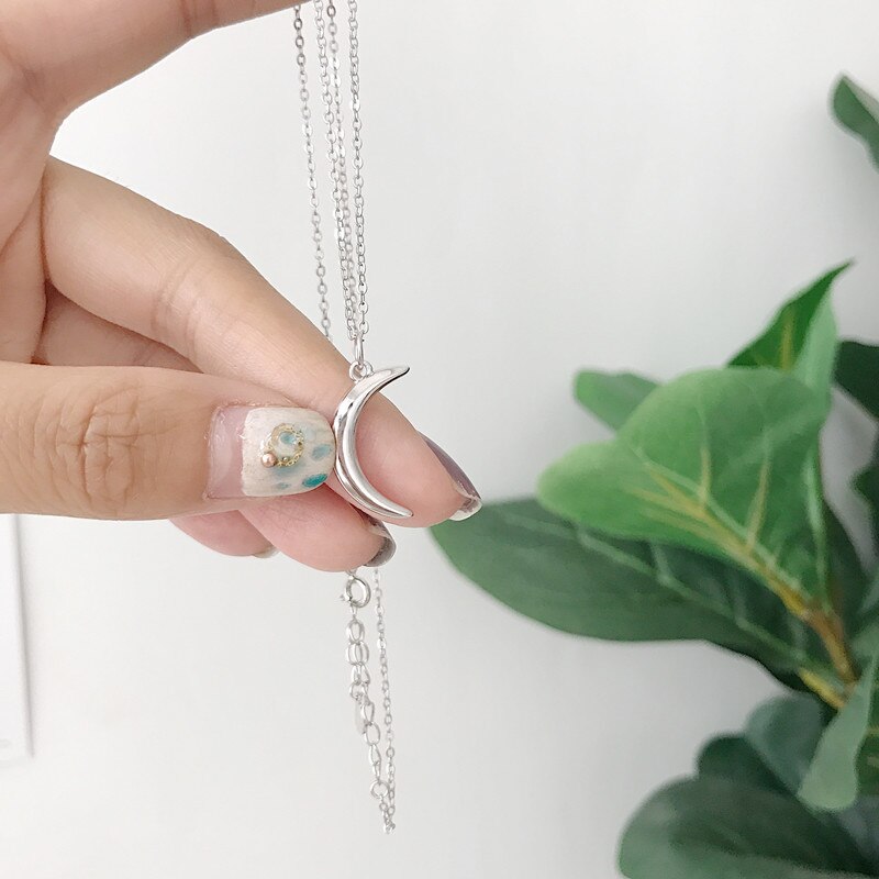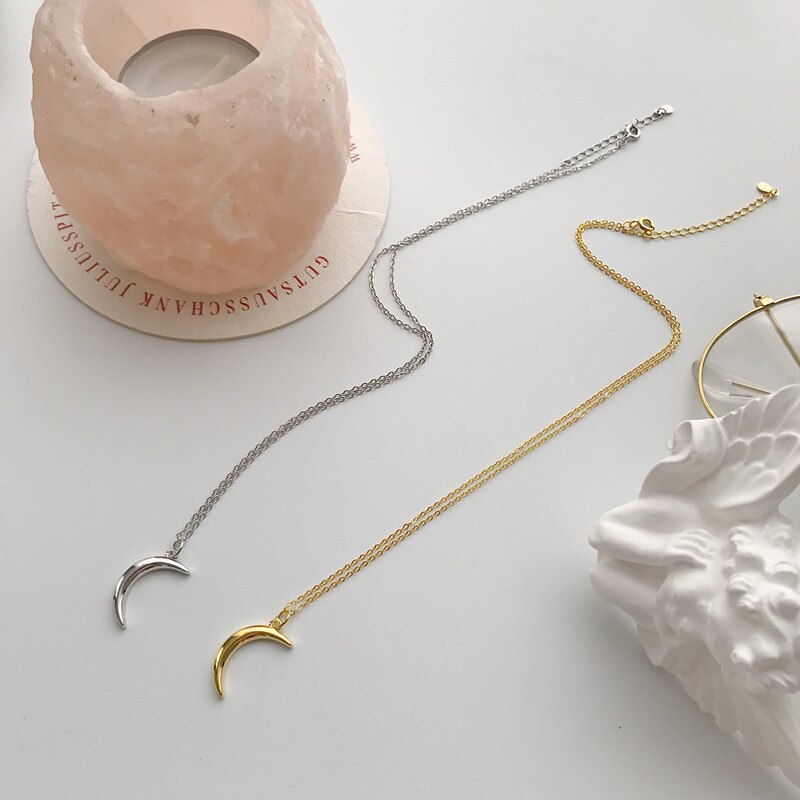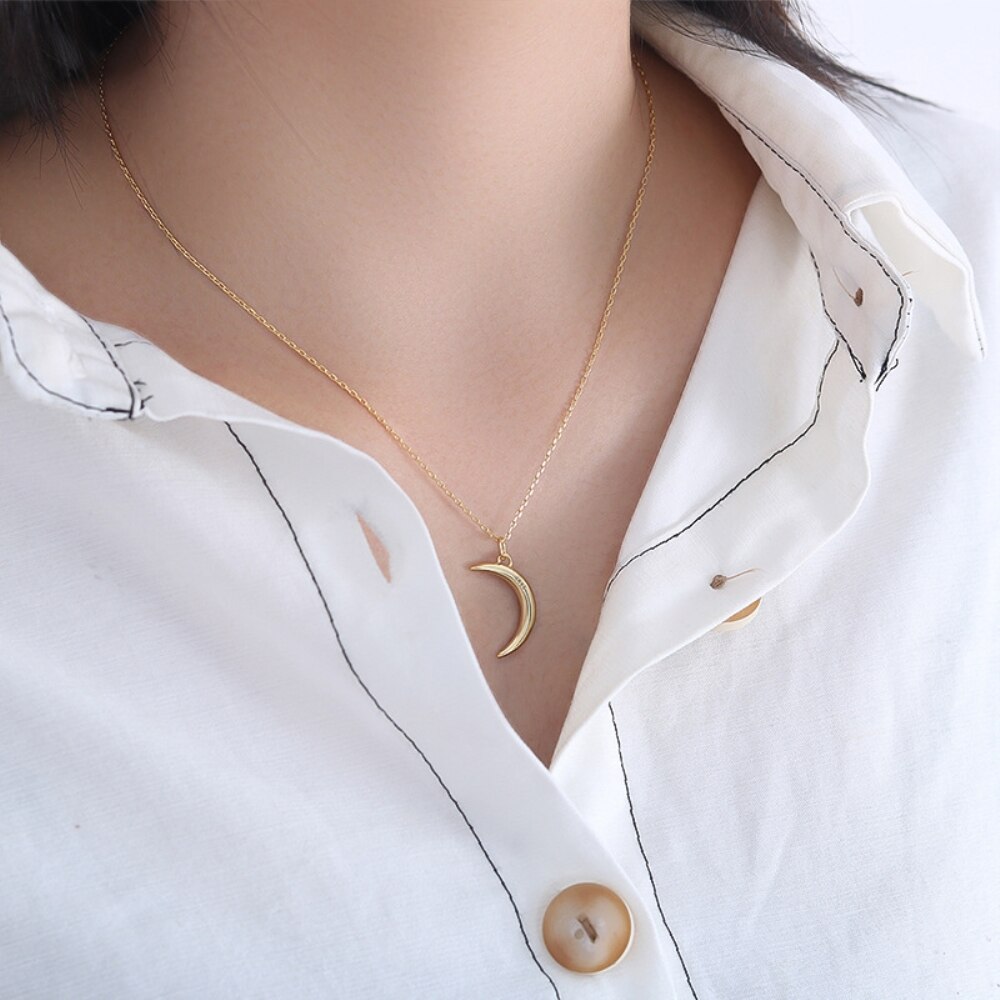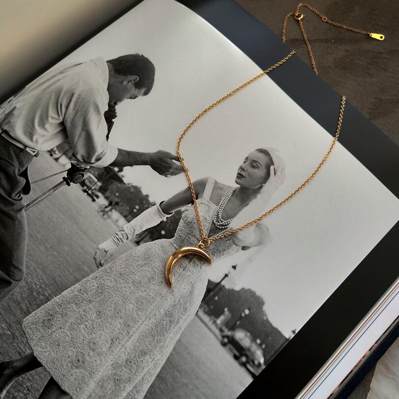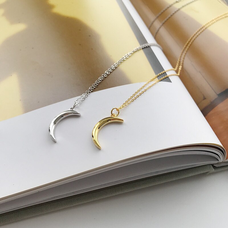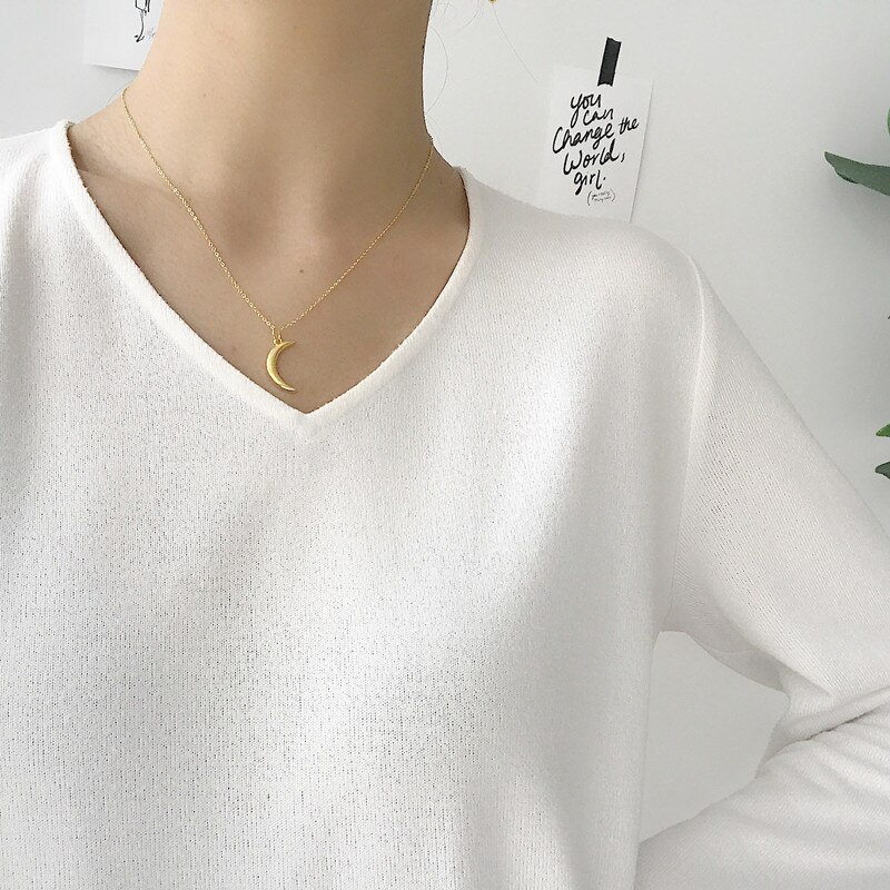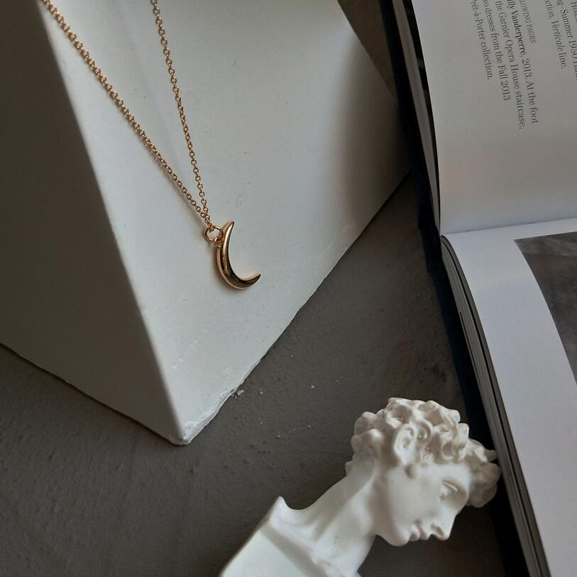 An affordable, gold accessory to finish off your outfit. Shaped as a moon, this necklace is dainty and can be dressed up or down. Made of sterling silver, with a 45cm length.
