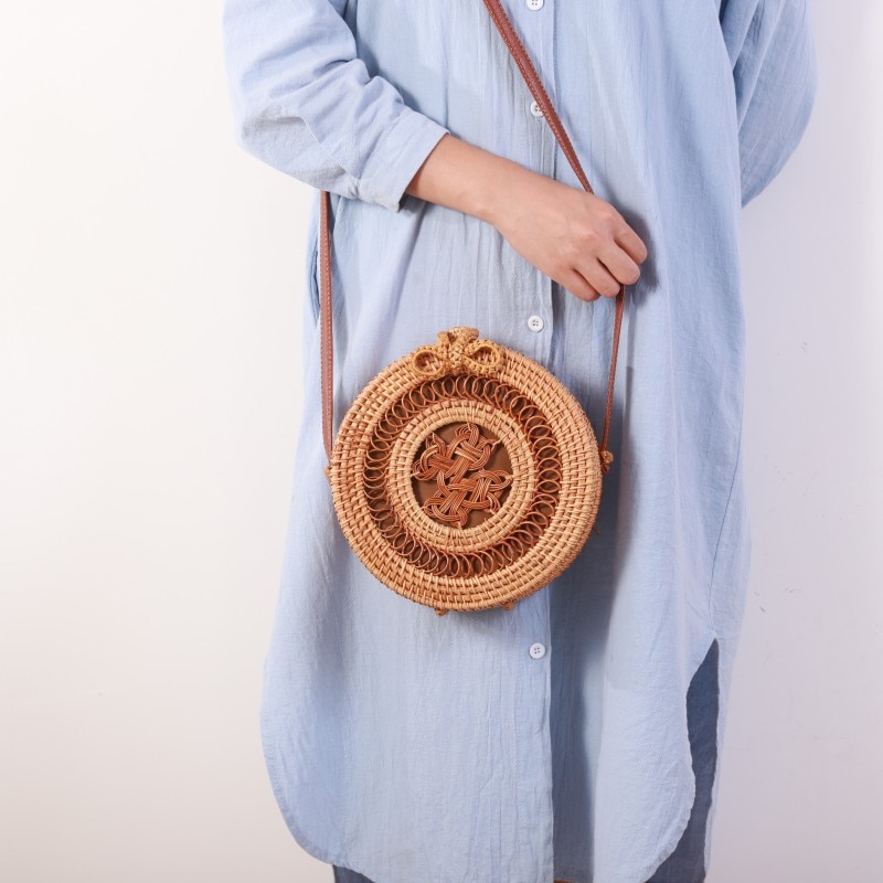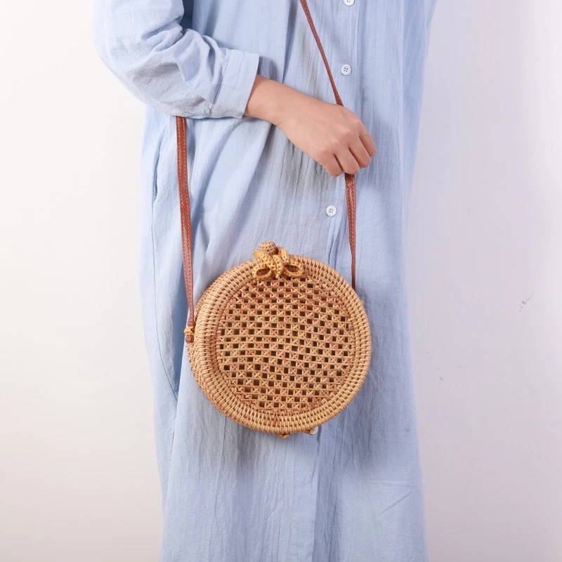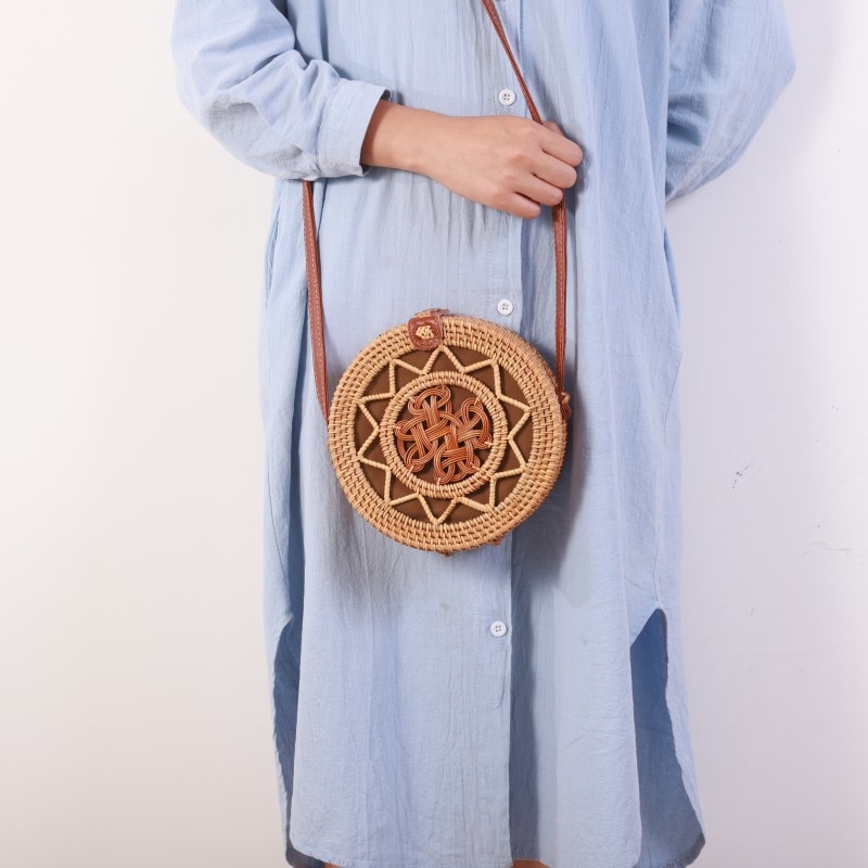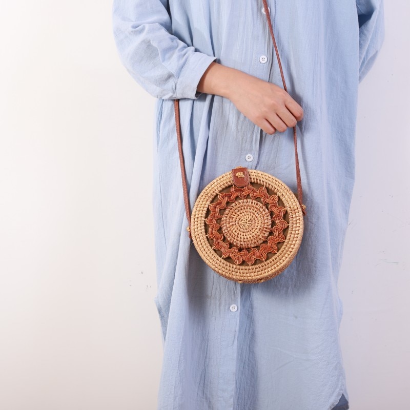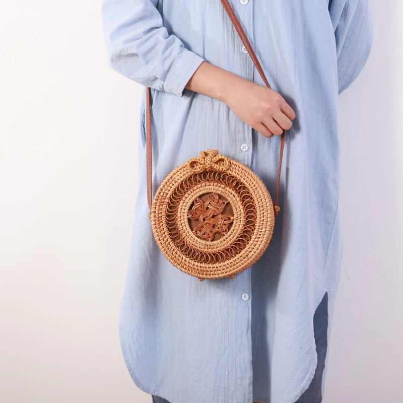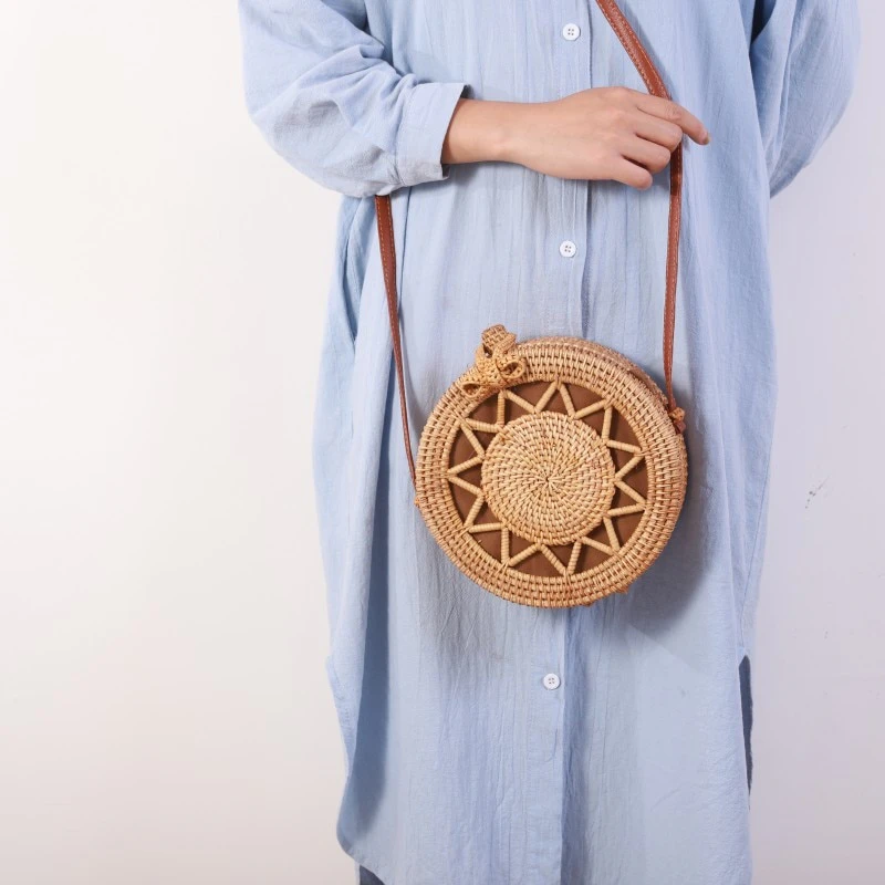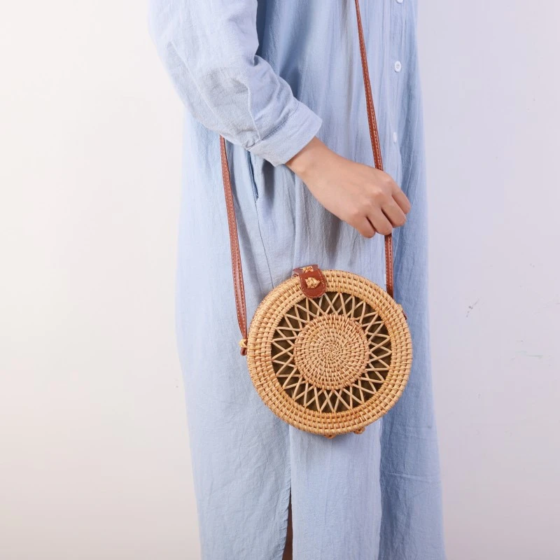 If you're looking to add a touch of bohemian charm to your ensemble then look no further. Made from woven rattan, this crossbody bag is both durable and lightweight. The PU leather shoulder strap ensures comfortable wear, while the hasp closure keeps your belongings safe and secure. With a range of beautiful circular designs to choose from, you can find the one that best matches your personal style. Whether you're heading to the beach, running errands, or going out for the night, this crossbody rattan bag is the perfect addition to any outfit.
