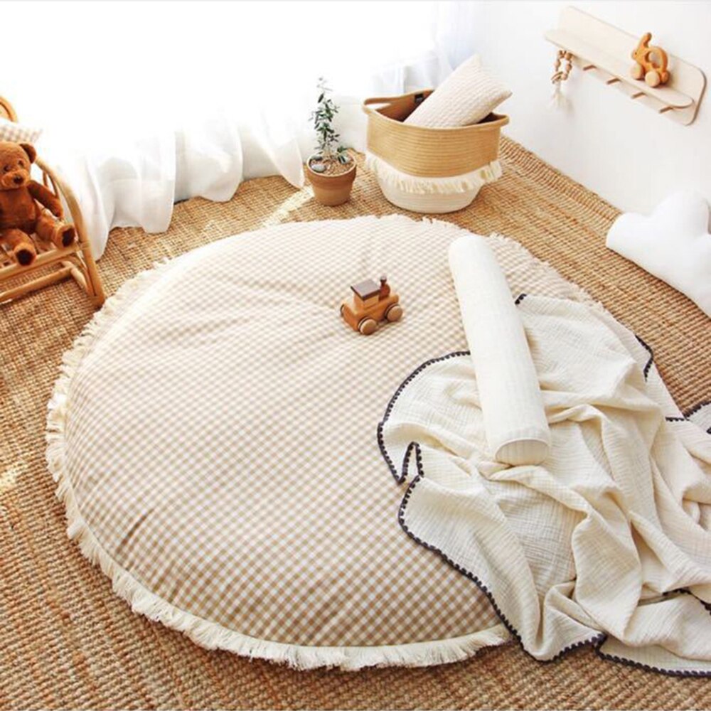This circular play pad is perfect for children who are just learning to sit up. The soft cushioning helps to make any surface more comfortable, and the extra-large size accommodates multiple children at a time. The high-quality material protects against stains, spills, and tears. This mat has been made with soft, cushiony foam for comfort and safety, as well as a water-resistant cover to protect from spills. It's the perfect place to keep your little one entertained at home!