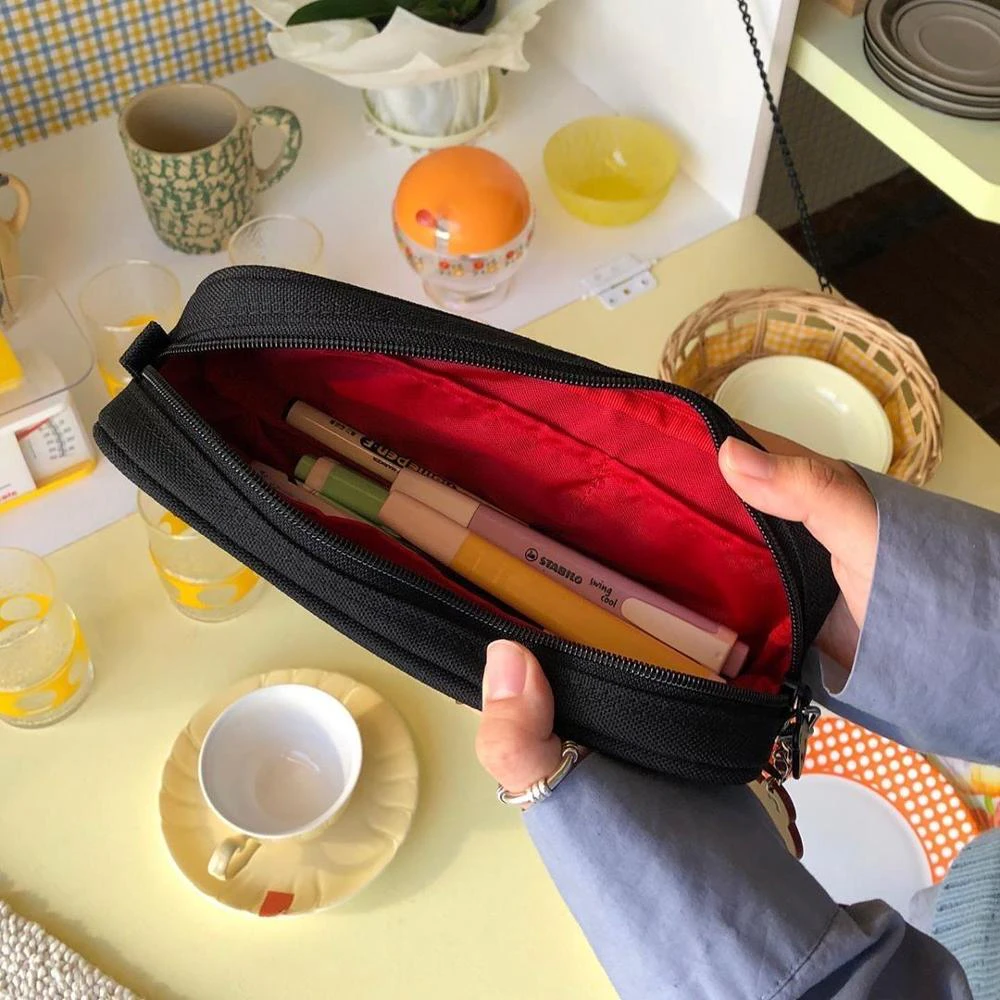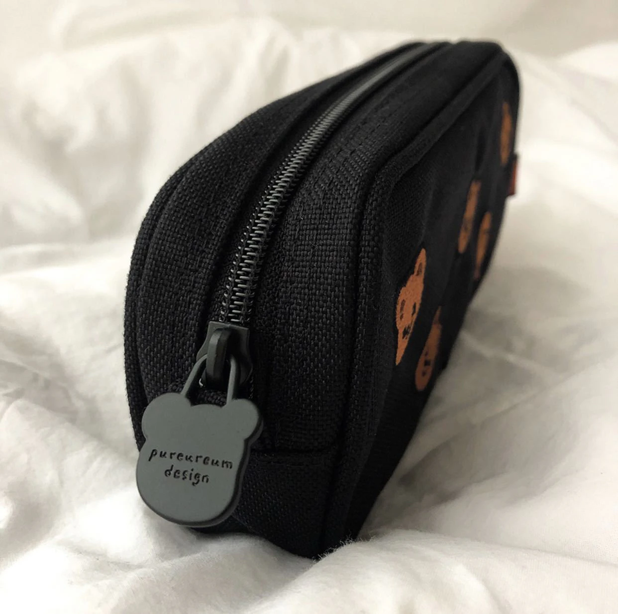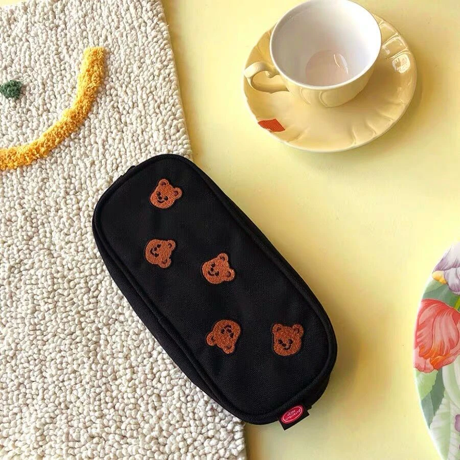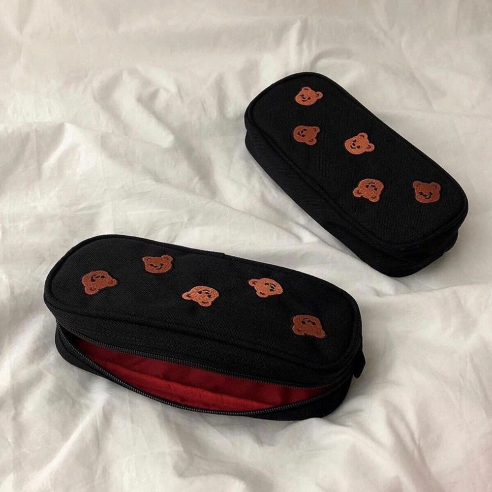 A cute case to store your pencils, makeup brushes, accessories and other small items this bear embroidered pencil case features a zip closure and multiple interior pockets to sort your items into.