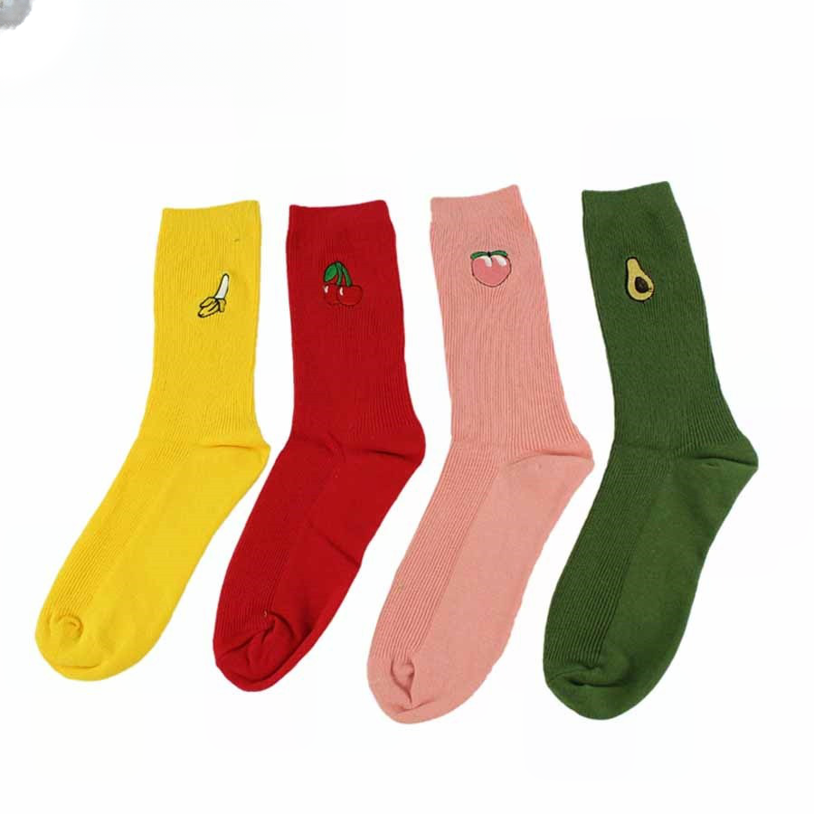 Add a pop of color to your wardrobe with these adorable cute fruity socks. Made from a soft cotton blend, these socks feature a fun and playful design of various fruits, including bananas, peaches and cherries. The stretchy material ensures a comfortable fit, while the reinforced heel and toe offer added durability. Perfect for adding a touch of fun to any outfit, these fruity socks are a must-have for any sock collection.