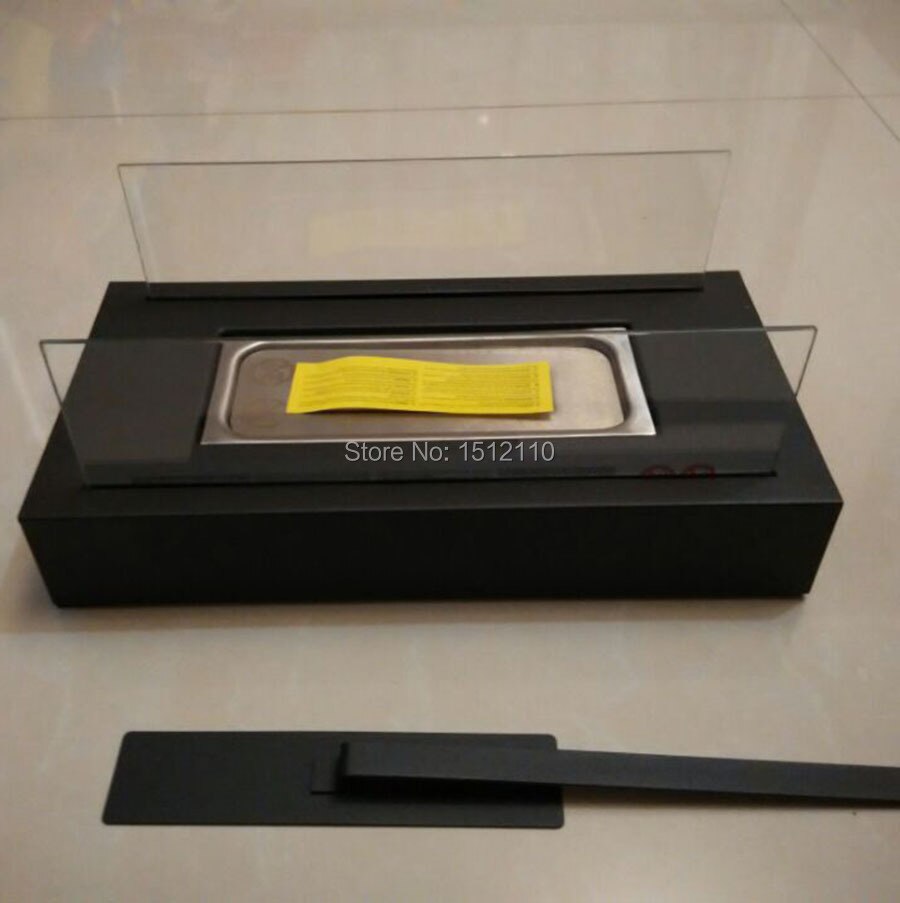 It features a rectangular stainless steel body and glass plates for protection. It also comes with a metal lid that is designed to naturally extinguish the fire.