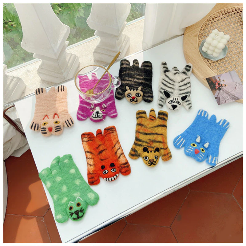 These amazing handmade felt coasters are available in a range of colourful animal shapes and designs. A unique addition to any coffee table, these heat resistant coasters are perfect for hot mugs, pots, pans or just used as an eye catching decor piece.