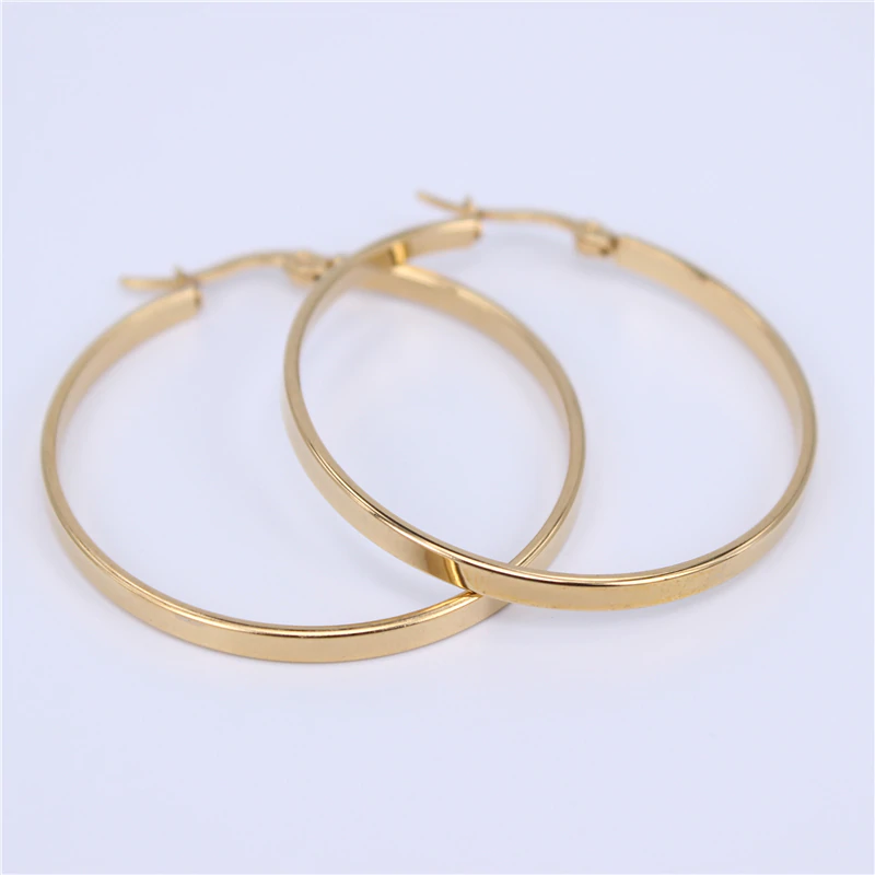 A timeless style to add to both your day and night time looks, these flat gold hoop earrings make a lovely finish to any outfit.